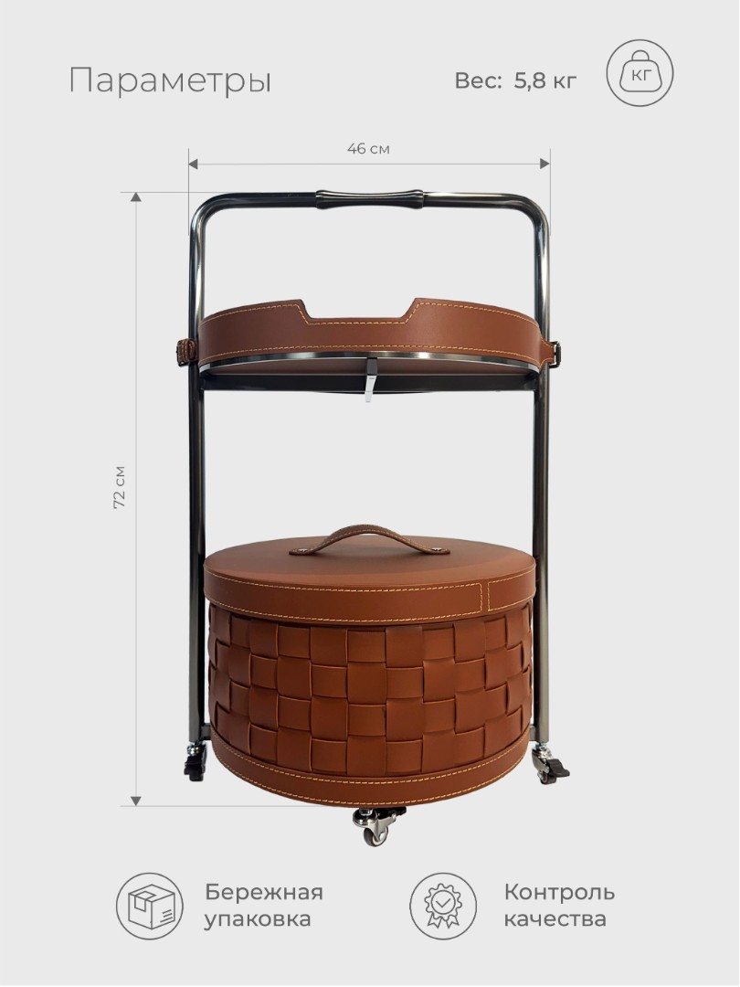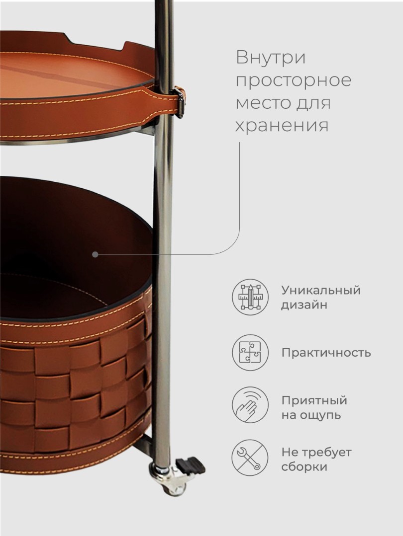 Колеса: Столик оснащен колесами, что делает его мобильным и позволяет легко перемещать по комнате.