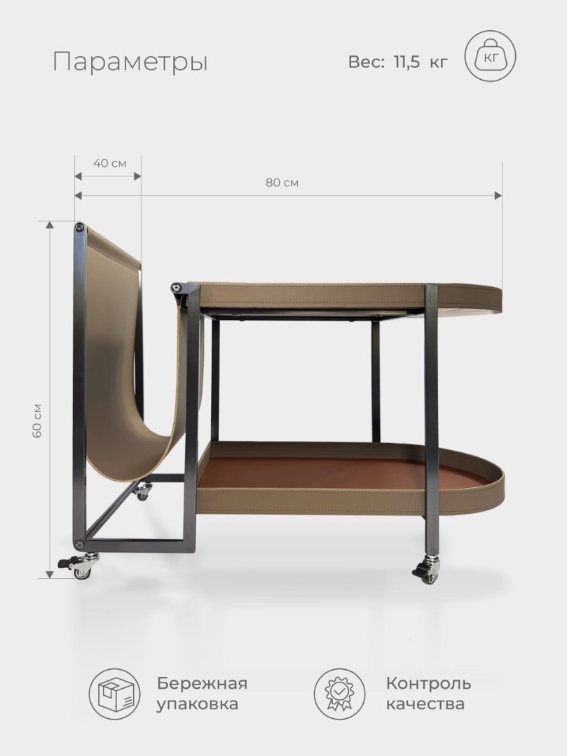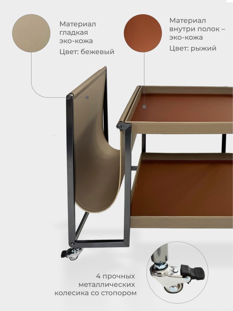 Колеса: Столик оснащен колесами, что делает его мобильным и позволяет легко перемещать по комнате.