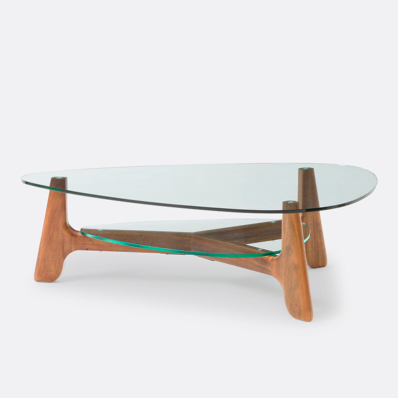 Стол журнальный с двойной столешницей из стекла и орехового дерева Aiole единый размер каштановый