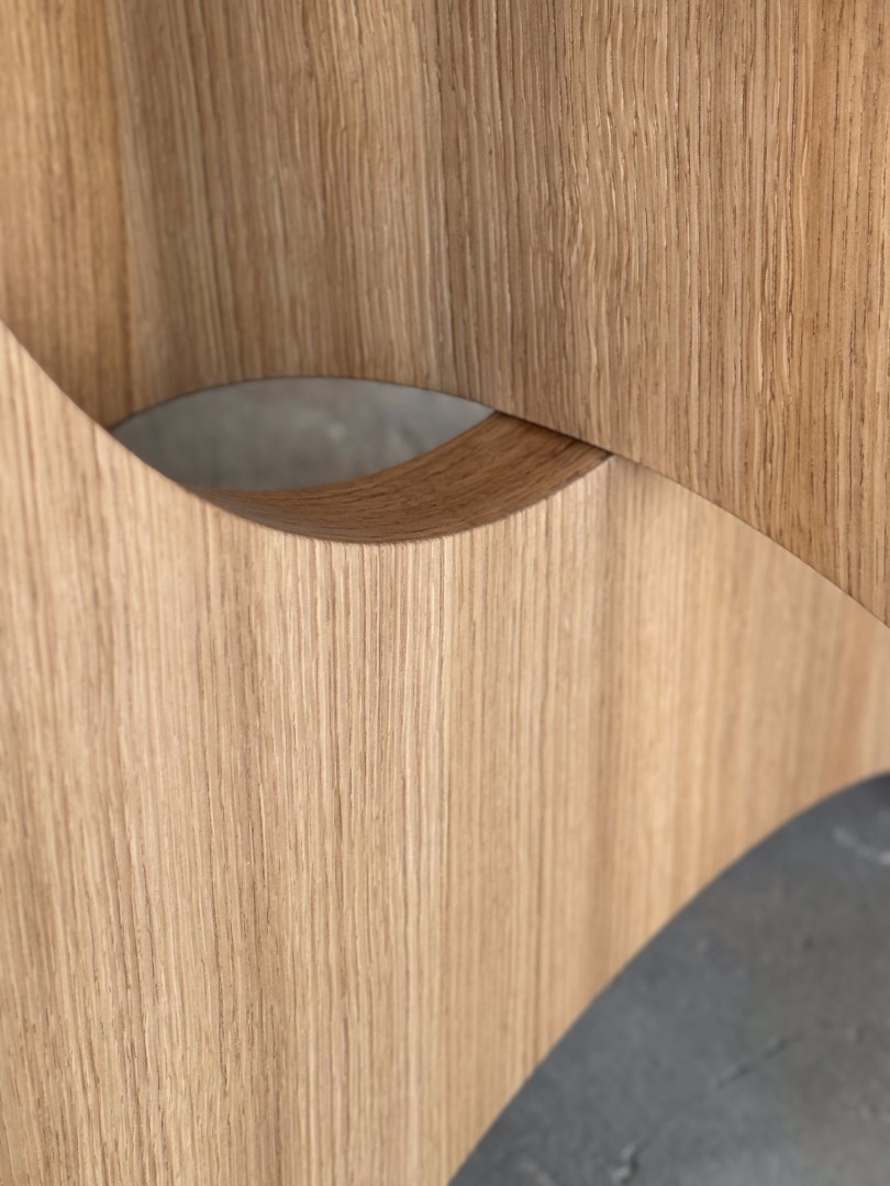 Запросить индивидуальное предложениеZveno Table — минималистичный стол с выразительной основой. Подстолье в виде переплетенных звеньев делает его не просто функциональным, но и визуально динамичным. Zveno Table — это баланс строгости и выразительности. Простая форма столешницы сочетается с оригинальным подстольем, вдохновленным переплетением звеньев. Эта деталь придает столу характер, сохраняя его устойчивость и удобство в использовании. Лаконичный дизайн делает Zveno универсальным — он гармонично впишется в современный интерьер. В зависимости от размеров он может служить рабочим, обеденным или журнальным столом. Тонировка шпона — +10% к стоимости.