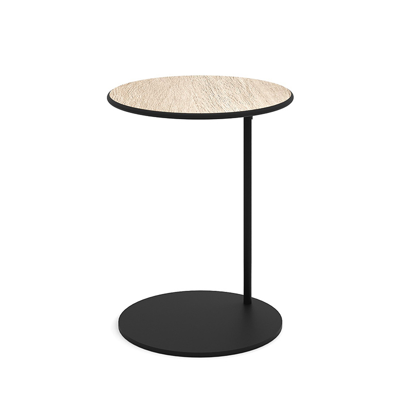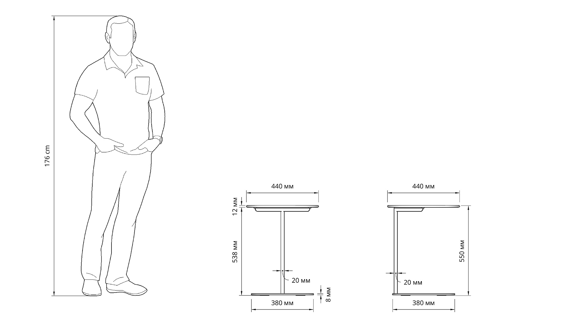 Столешница выполнена из компакт-плиты, обладающей высокой устойчивостью к влаге, механическим повреждениям и термическим воздействиям, а утонченная металлическая ножка и основание придают конструкции устойчивость.