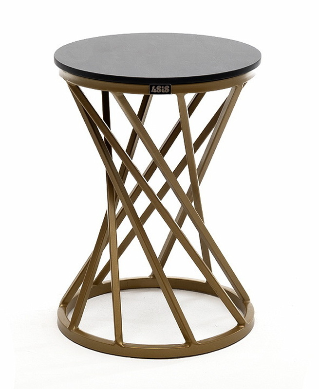 "Сантьяго" журнальный стол из HPL круглый Ø40 H55, каркас из стали золотой, цвет столешницы "серый гранит"