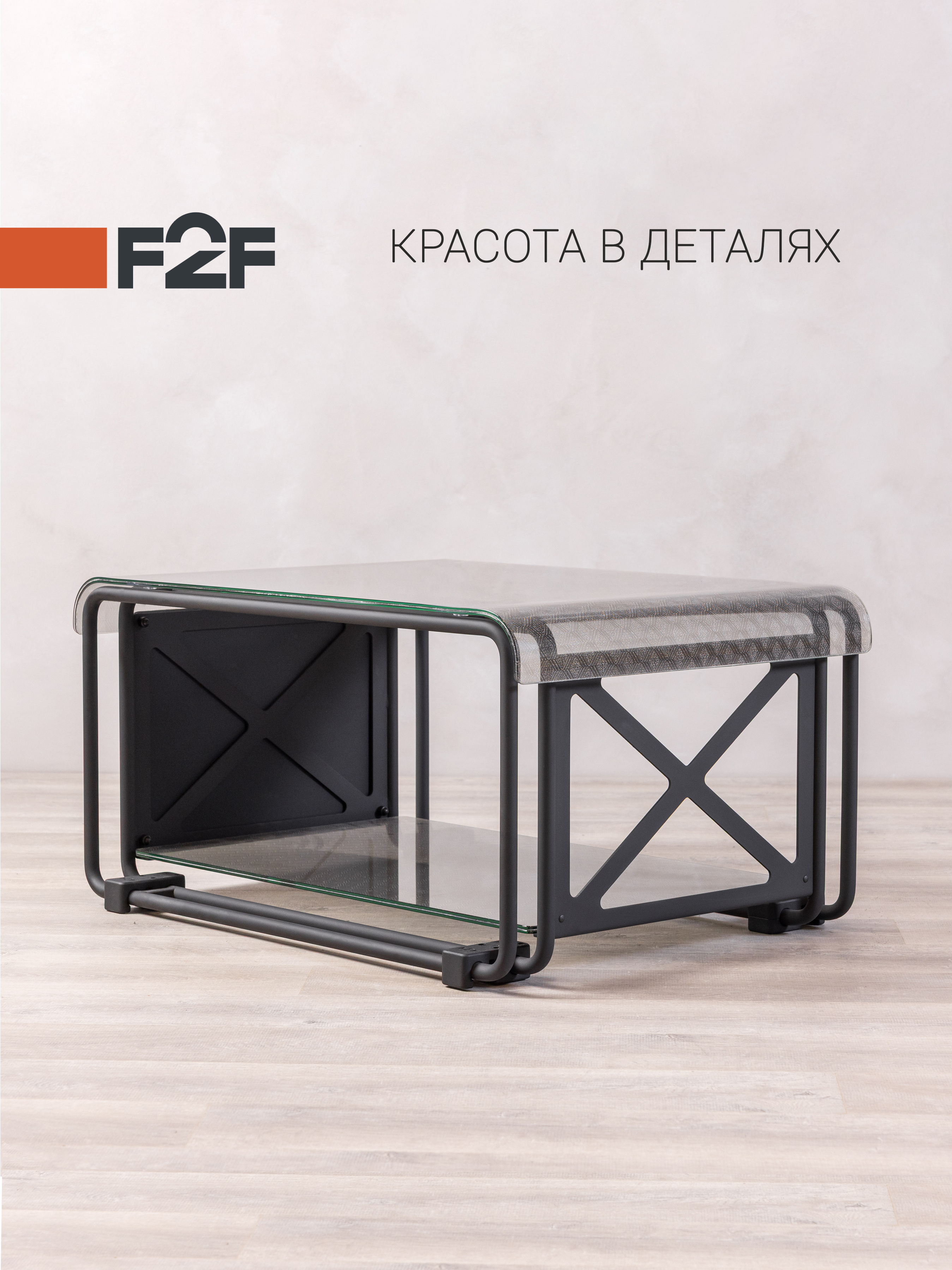 Забудьте об обычных журнальных столиках! Журнальный столик F2F МОДУЛЬ - воплощение минимализма и инженерной эстетики для современных интерьеров. Стильная конструкция из прочного металла и эксклюзивное стекло, инкрустированное сеткой и выгнутое по технологии моллирования, создают неповторимый акцент в пространстве. Модульная система позволяет собирать уникальные комбинации для дома или офиса: от классического кофейного столика до функциональной полки. Каждая деталь продумана — устойчивость, легкость ухода и премиальные материалы. Столик подчеркнёт свежий взгляд на дизайн и станет ярким акцентом, сохраняя высокую практичность. F2F — красота в деталях без компромиссов.