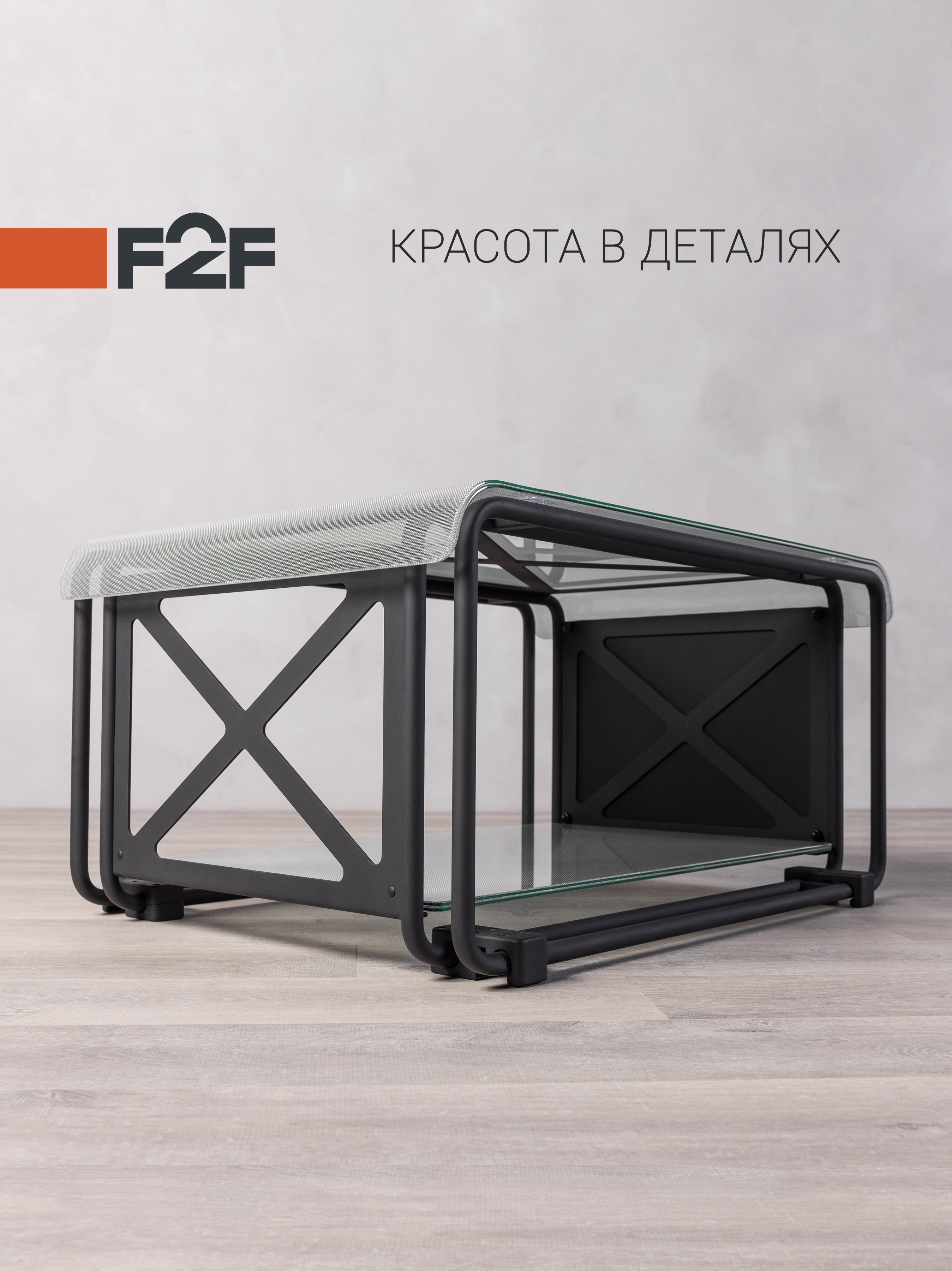 Забудьте об обычных журнальных столиках! Журнальный столик F2F МОДУЛЬ - воплощение минимализма и инженерной эстетики для современных интерьеров. Стильная конструкция из прочного металла и эксклюзивное стекло, инкрустированное сеткой и выгнутое по технологии моллирования, создают неповторимый акцент в пространстве. Модульная система позволяет собирать уникальные комбинации для дома или офиса: от классического кофейного столика до функциональной полки. Каждая деталь продумана — устойчивость, легкость ухода и премиальные материалы. Столик подчеркнёт свежий взгляд на дизайн и станет ярким акцентом, сохраняя высокую практичность. F2F — красота в деталях без компромиссов.
