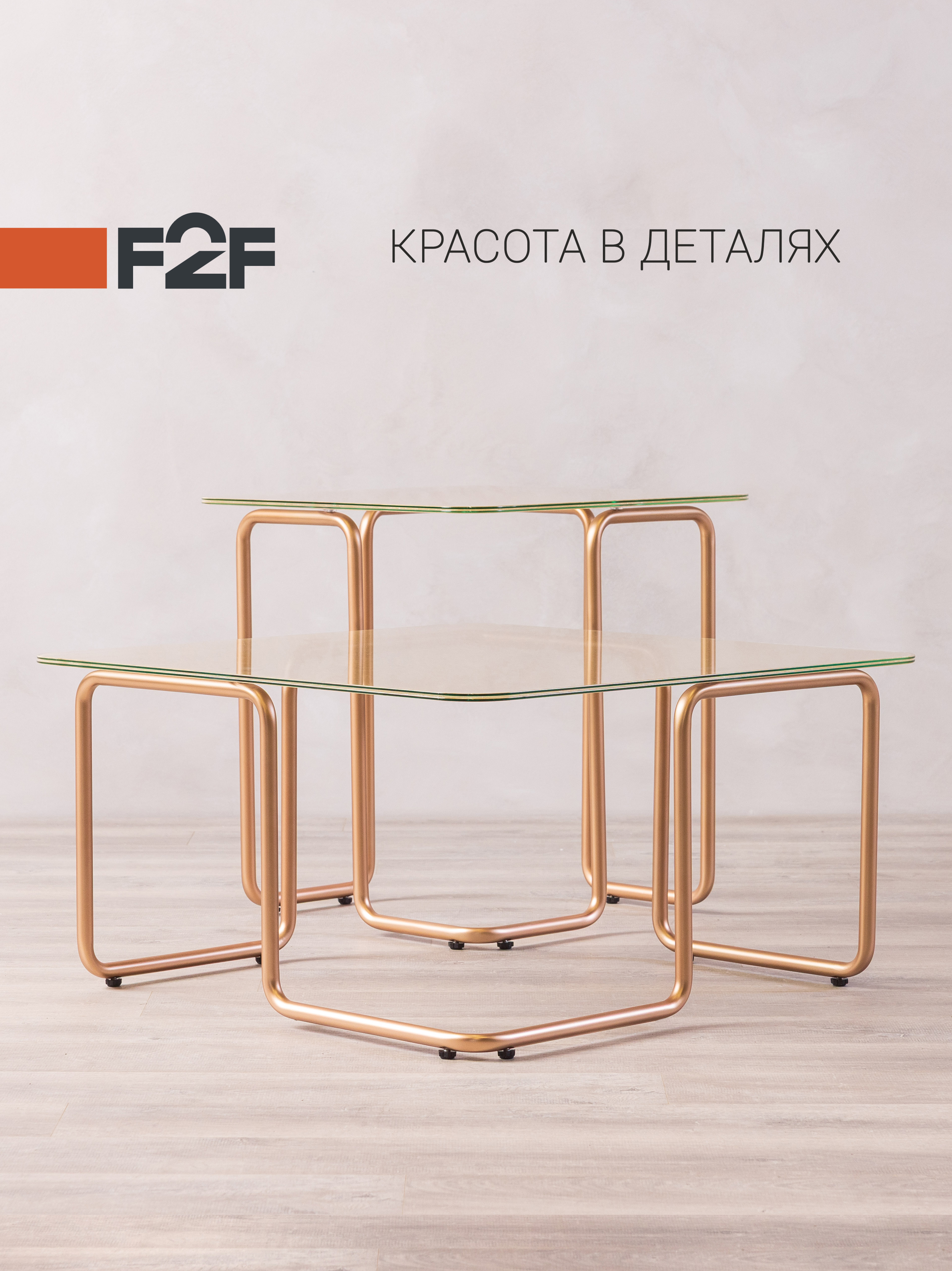 Журнальный столик МЁБИУС от бренда F2F. Когда дизайн встречается с инновациями, рождаются столики МЁБИУС — идеальное воплощение баланса между функциональностью и эстетикой. Этот уникальный комплект из двух столиков представляет собой изысканное решение для тех, кто отдает предпочтение эксклюзивным дизайнерским концепциям.  Сверхпрочное армированное сеткой стекло — не просто материал, а произведение инженерной мысли и опыта. Каждая столешница способна выдержать нагрузки повседневной жизни, оставаясь восхитительной. Стальной каркас с толщиной стенки 2мм и высококачественным покрытием — это гарантия надёжности на десятилетия. Металлические ножки не только  обеспечивают исключительную устойчивость, но и создают характерный силуэт, который станет акцентом любого интерьера. Визуальная лёгкость, которая расширяет границы.