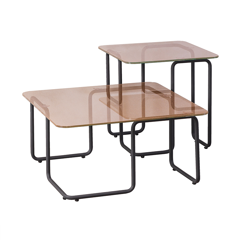 Журнальный столик F2F МЁБИУС бронзовое стекло, черный корпус. Комплект из 2-х шт.