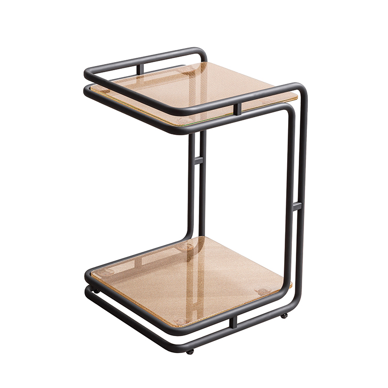 Столик АЙРОНИ С от бренда F2F воплощает в себе современный минимализм и функциональный стиль. Прочный металлический каркас с матовым покрытием подчёркивает его индустриальный характер, а полки из закалённого стекла придают конструкции лёгкость и динамичность. Благодаря компактной Г-образной форме, этот столик идеально впишется  в интерьер любого помещения, будь то квартира или офис. Он может использоваться как прикроватная тумбочка, подставка для растений или журнальный столик.