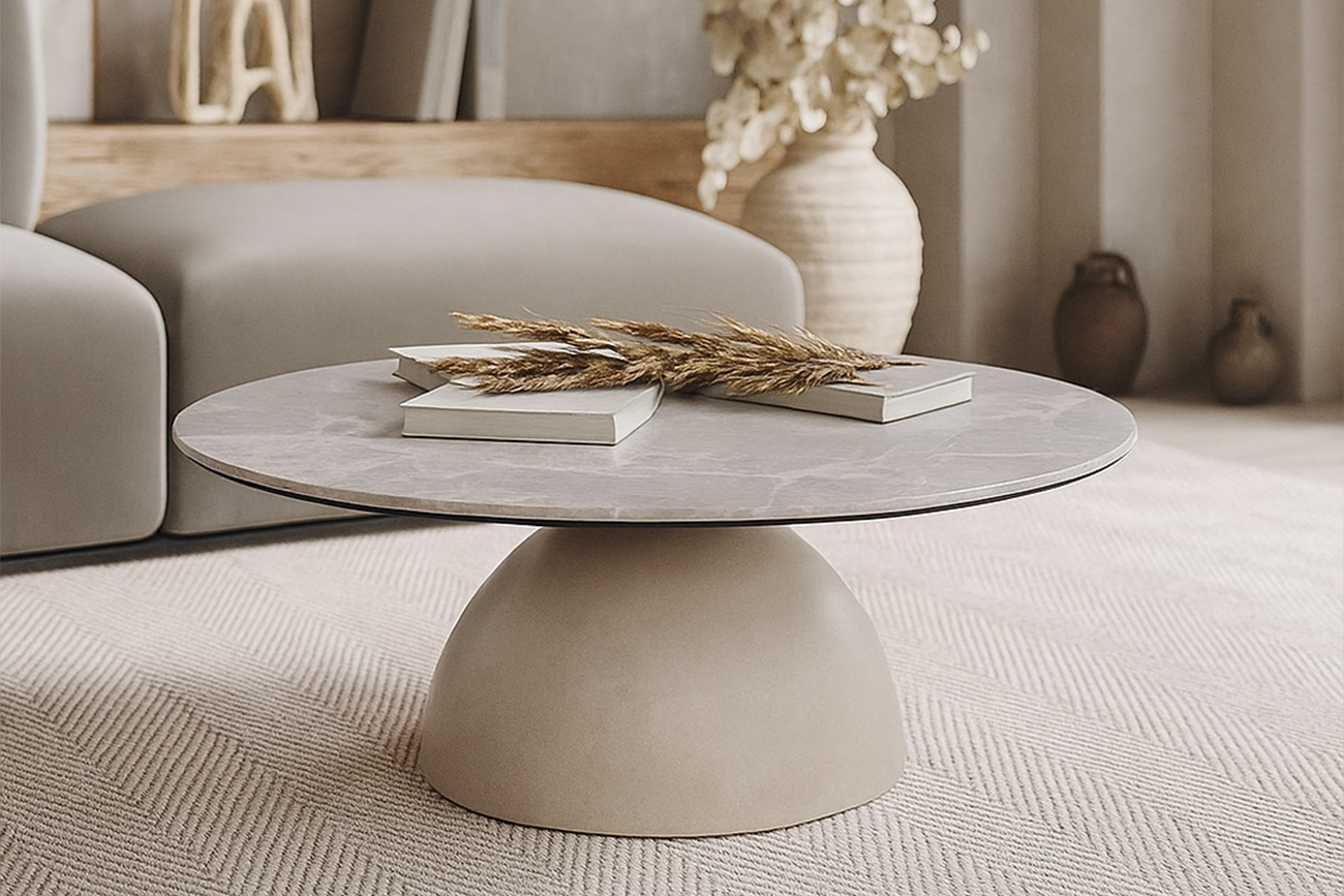 Запросить индивидуальное предложениеЖурнальный стол Augustus — яркий пример того, как функциональность сливается с формой, создавая скульптурный минимализм. Его круглая столешница выполнена из керамики в оттенке Gray, имитирующем благородный камень. Покрытие из закаленного стекла устойчиво к повседневному износу и не требует сложного ухода, сочетая эстетику керамики с практичностью. Конструкция стола отличается основательностью: столешница будто балансирует на мощном монолитном основании, что создает эффектную скульптурную форму. Дизайн круглого керамического стола соответствует самым актуальным трендам, где доминируют плавные линии и природные материалы. Это идеальный дизайнерский журнальный стол для современной гостиной или лаунж-зоны, привносящий ощущение утонченной роскоши и завершенности. Он станет сильным фокусом в пространстве, говорящим о внимании к деталям и хорошем вкусе. Толщина столешницы - 7мм (3мм керамика и 4мм закаленное стекло). Сочетается с журнальным столом 57EL-17012.