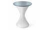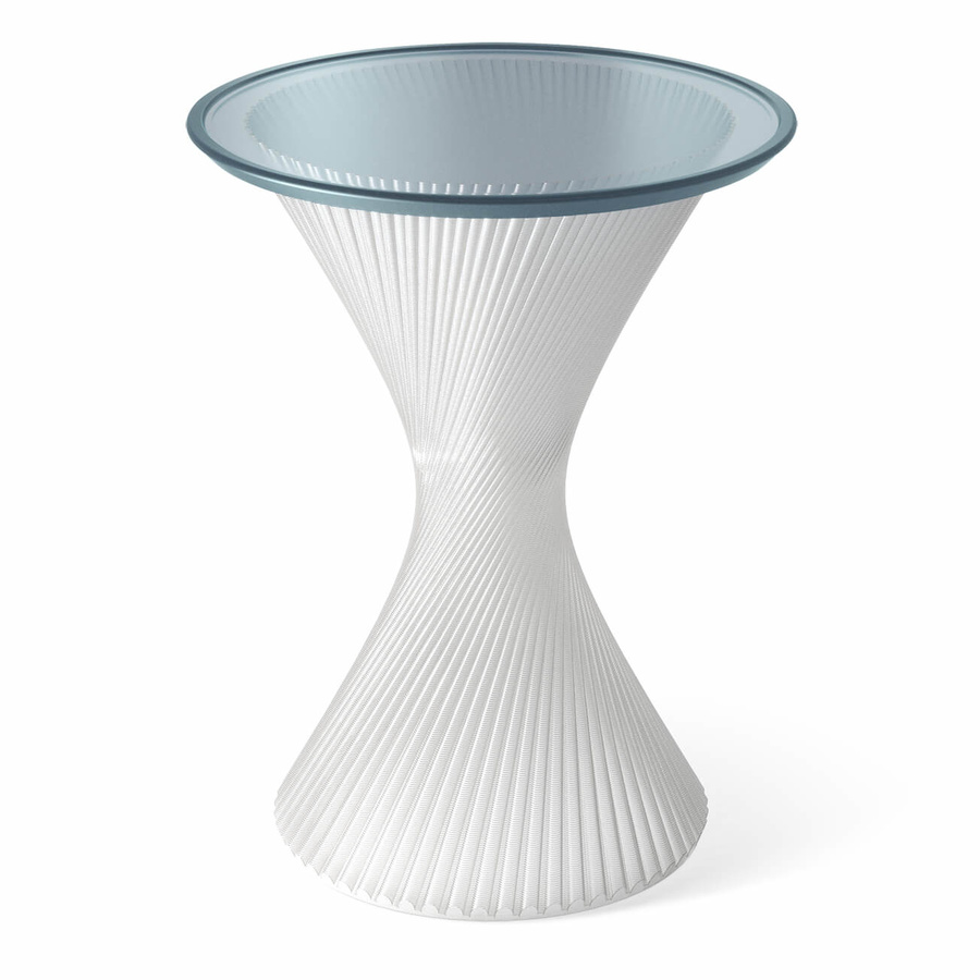 Благодаря использованию стекловидного материала, лучи проходящего света создают необыкновенную игру бликов, и делают столик визуально лёгким, не перегружая пространство.