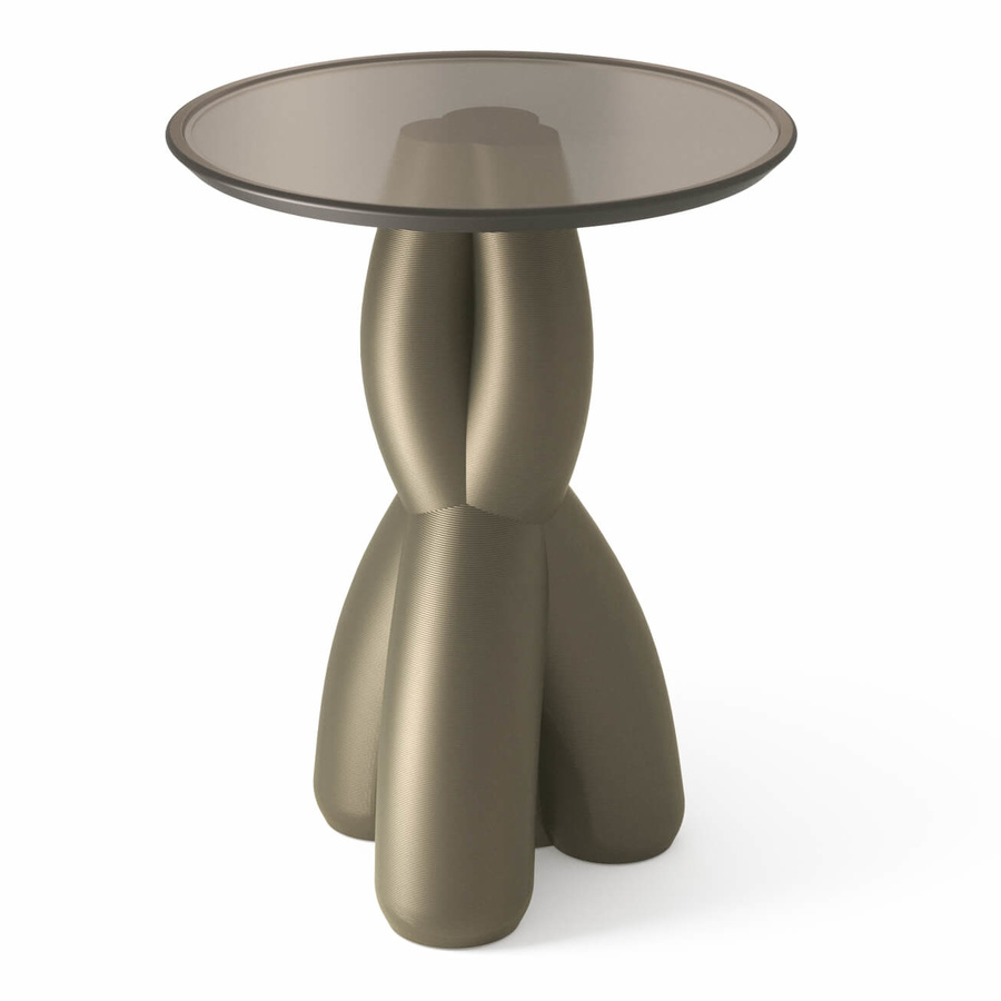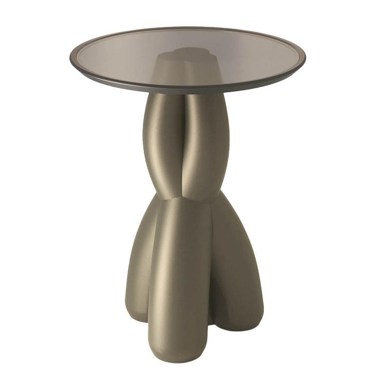 Специальная покраска создает иллюзию металла на солнце, а полупрозрачная столешница подчеркивает игру света и архитектурность форм.