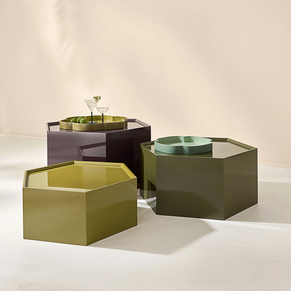 Комплект из 3 штабелируемых журнальных столиков Wai единый размер разноцветный