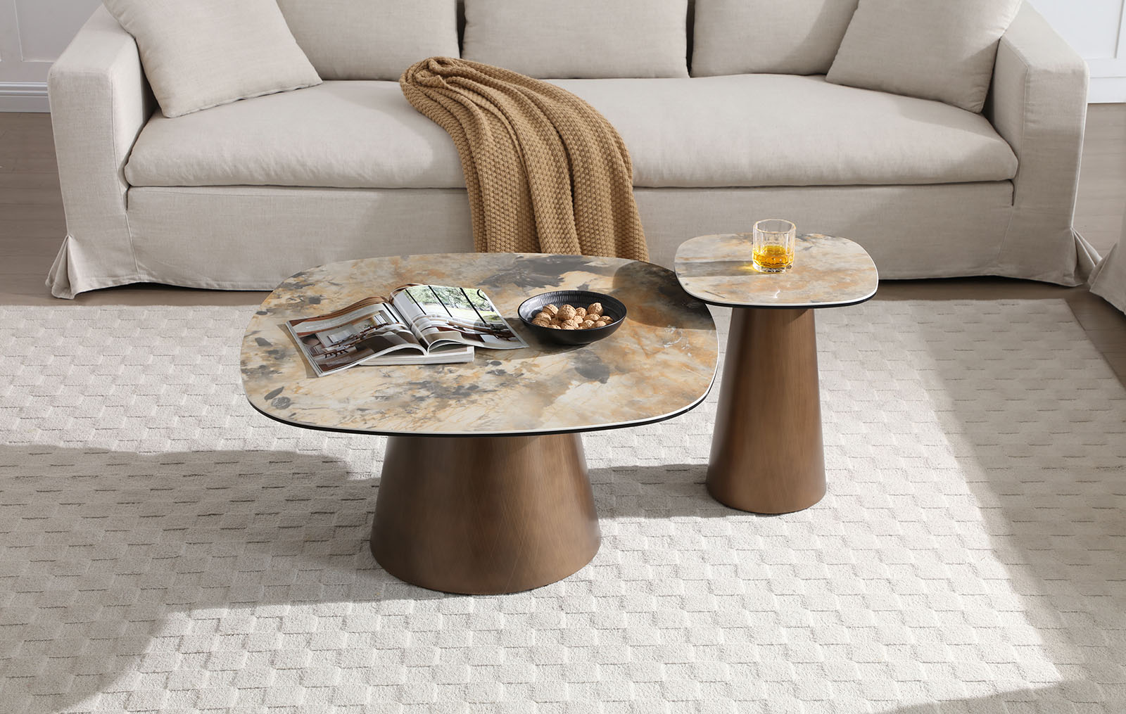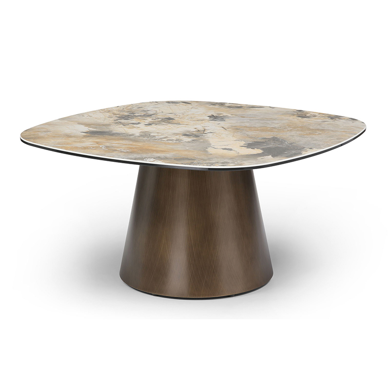 Запросить индивидуальное предложениеЖурнальный столик Melanie (Мэлани) прекрасно впишется во многие интерьерные стили современности, удачно дополнит интерьер гостиной и лаунж зоны. Cтолешница состоит из керамики толщиной 3 мм на слое закаленного стекла толщиной 8 мм. Преимущества керамики - износостойкость, долговечность, устойчивость к внешним воздействиям. Поэтому столик не только станет украшением интерьера, но и порадует своей практичностью. Подстолье из металла в медном оттенке.