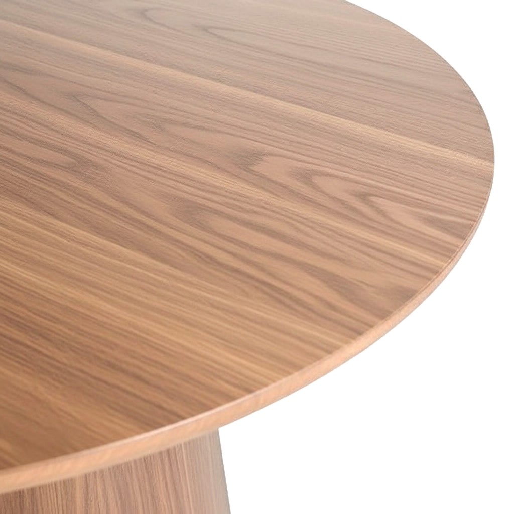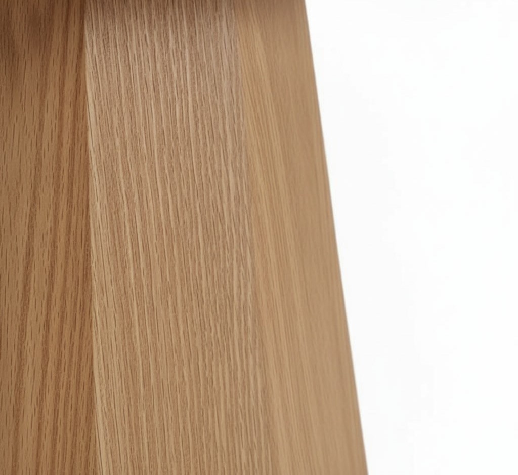 Столешница выполнена из натурального шпона дуба. Фаска по периметру визуально уменьшает толщину столешницы, создавая эффект тонкого, изящного объёма, несмотря на реальную толщину 20 мм.