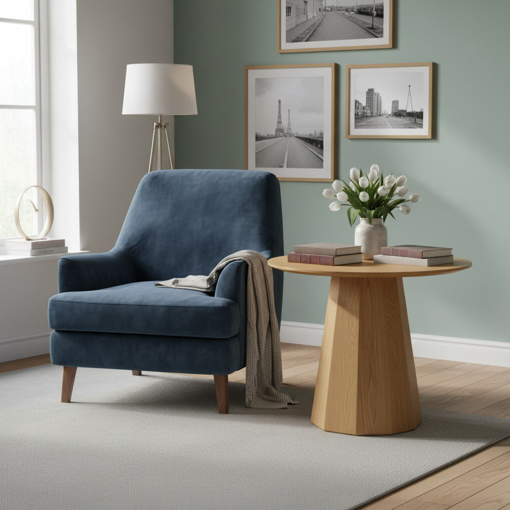 Светлая текстура дуба делает столик визуально лёгким и хорошо вписывающимся в современные интерьеры.