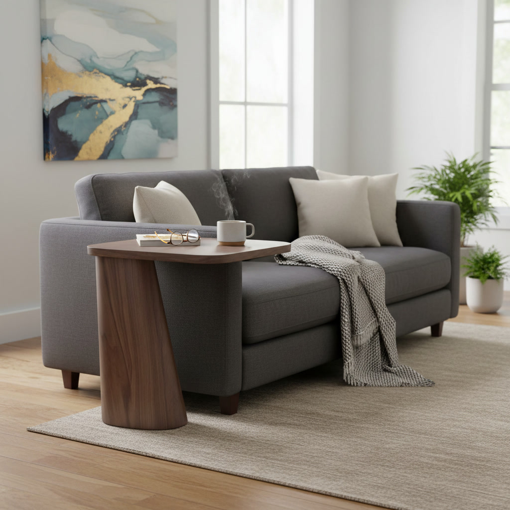 Столик идеально подойдёт в качестве приставного — рядом с диваном, креслом или кроватью, а также как дизайнерский акцент в жилых и общественных интерьерах.