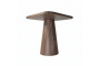 Коническое подстолье смещено относительно центра и соединено со столешницей только одним краем. Такое конструктивное решение создаёт ощущение движения и визуальной лёгкости, превращая столик в акцентный интерьерный объект.