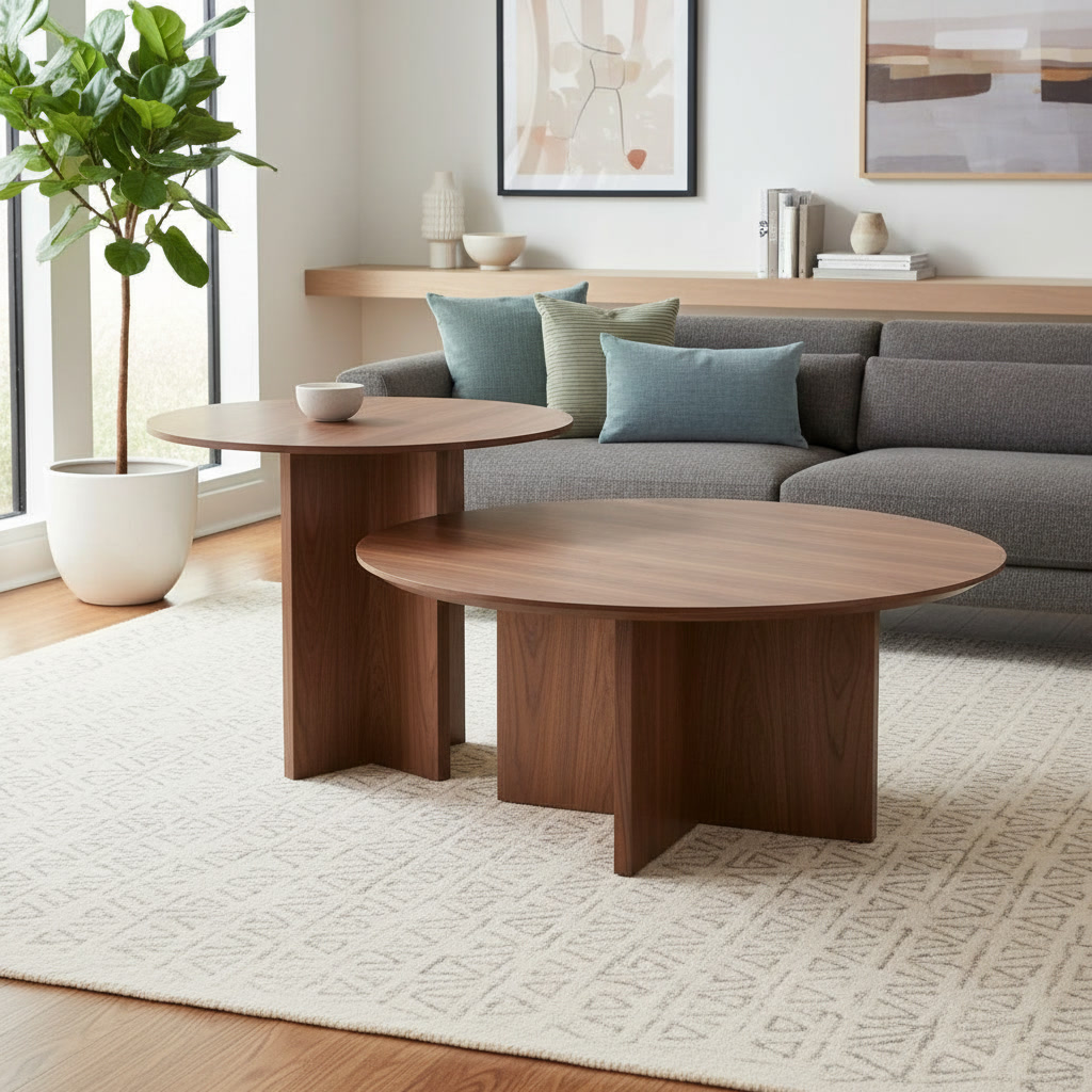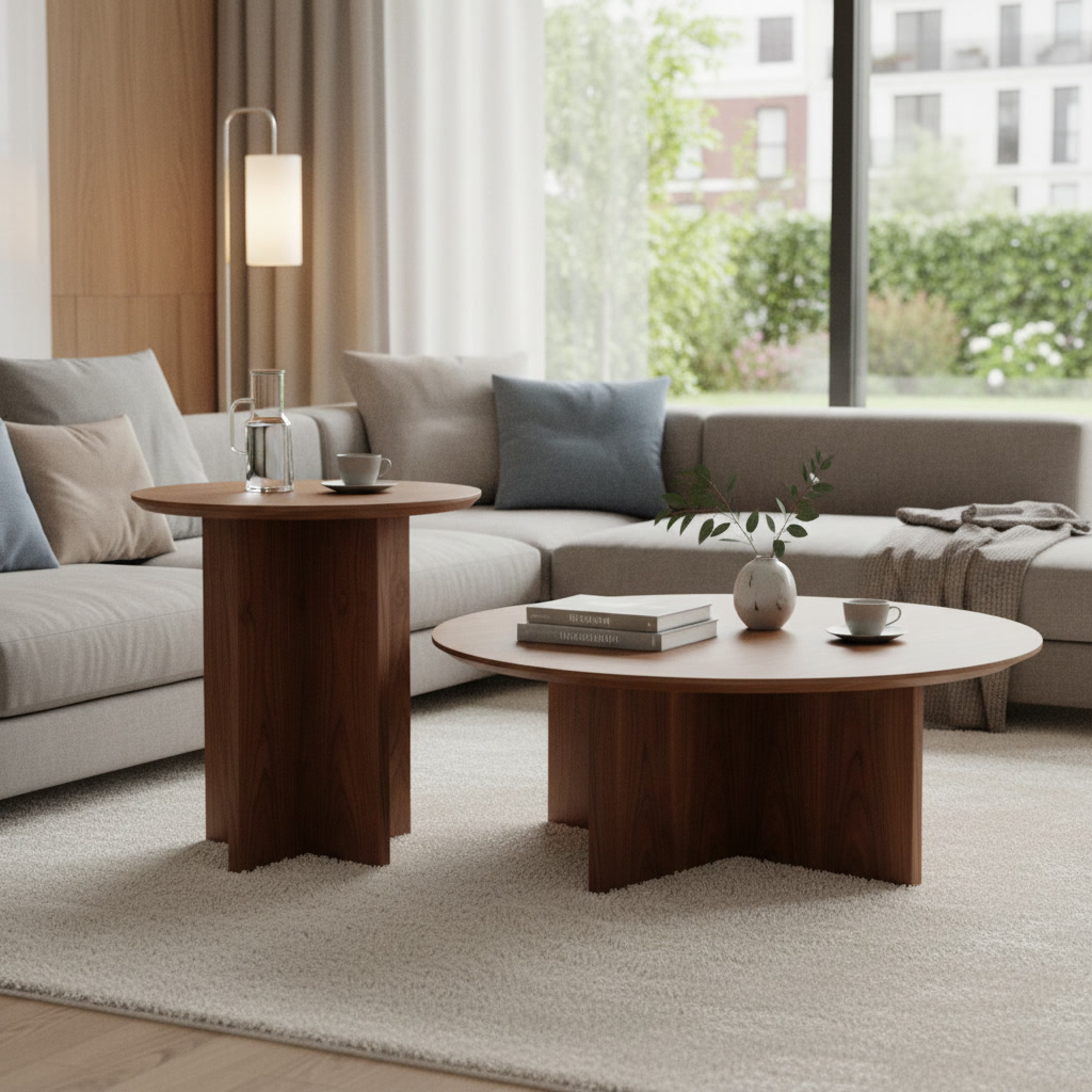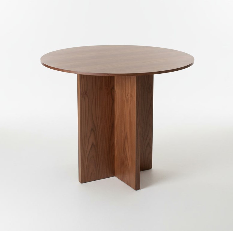Американский орех придаёт изделию выразительность и глубину, а строгая геометрия подстолья сохраняет баланс между декоративностью и функциональностью.