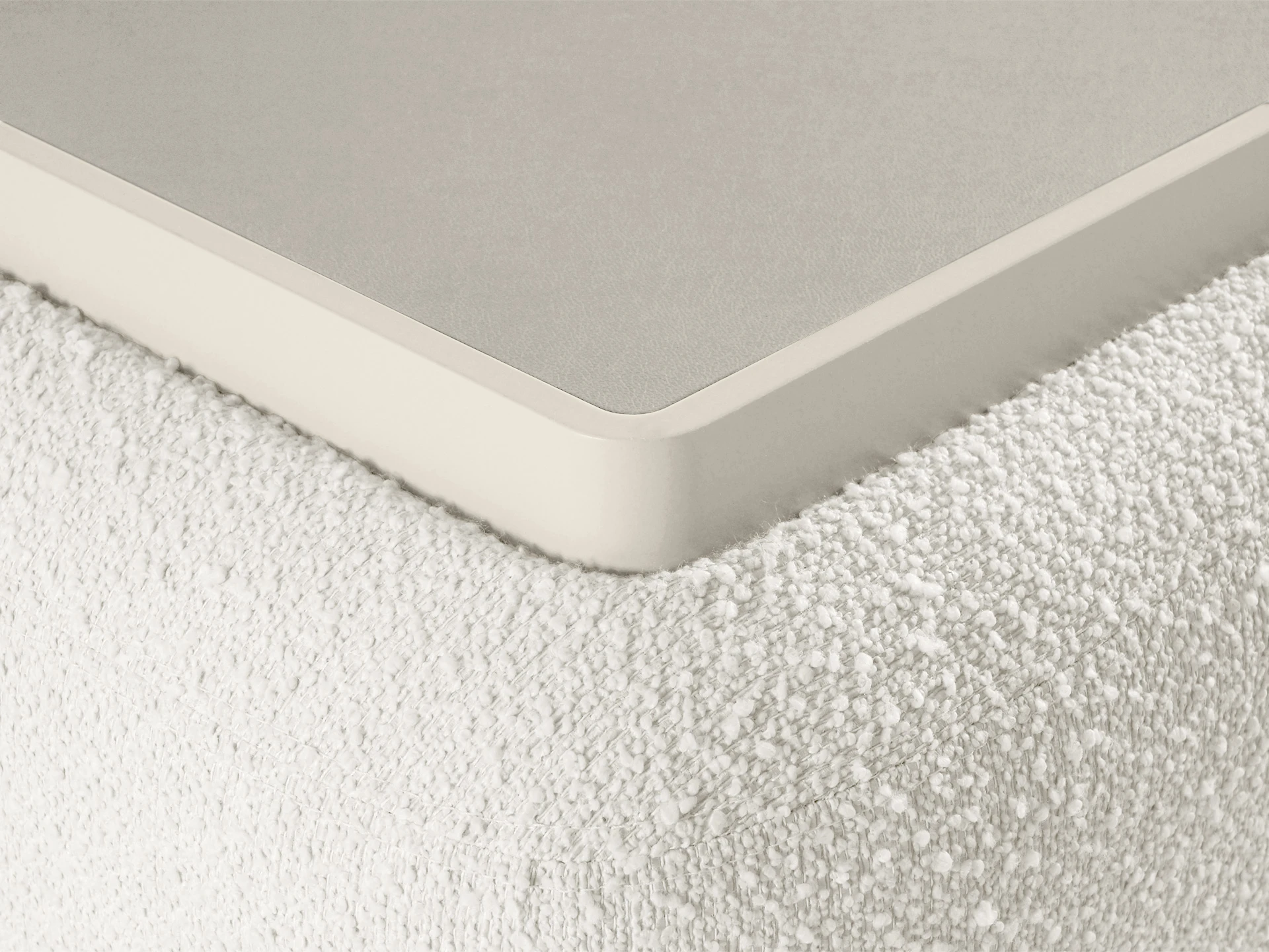 Рамка столешницы выполнена из плиты МДФ и окрашена эмалью в цвет кожи. Столешница может быть покрыта натуральной кожей Dizaro или экокожей Domus в следующих характеристиках: