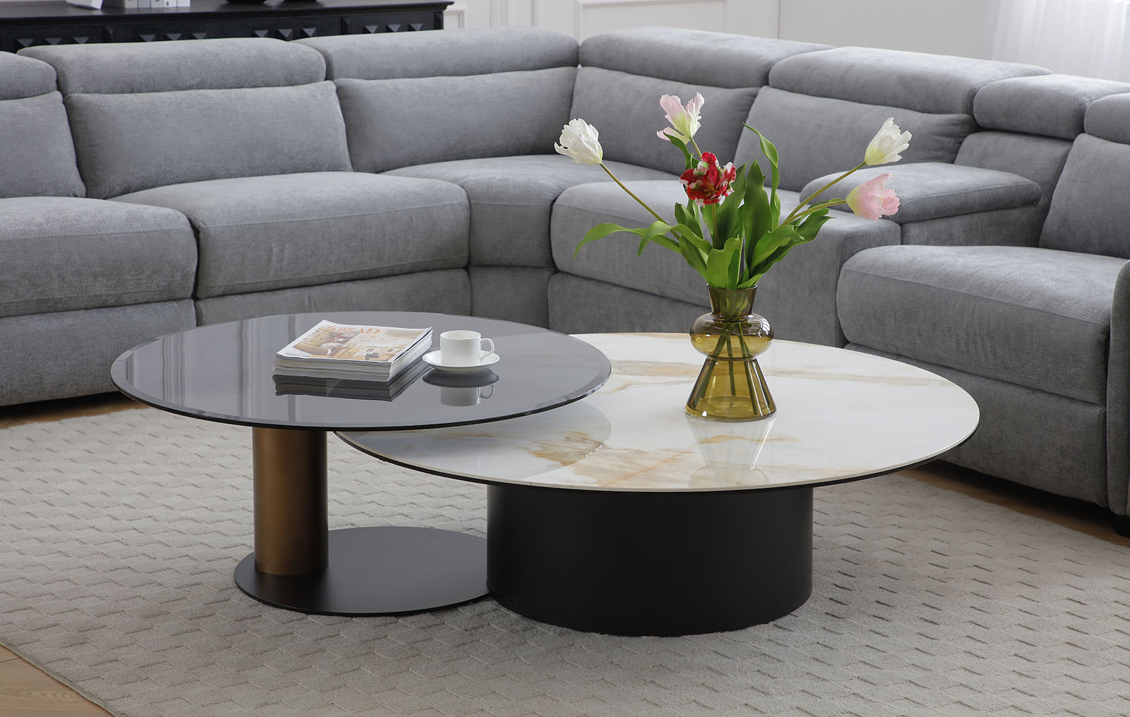 Набор из двух журнальных столиков Mist (Мист) создаёт функциональную и визуально сбалансированную композицию в гостиной.
