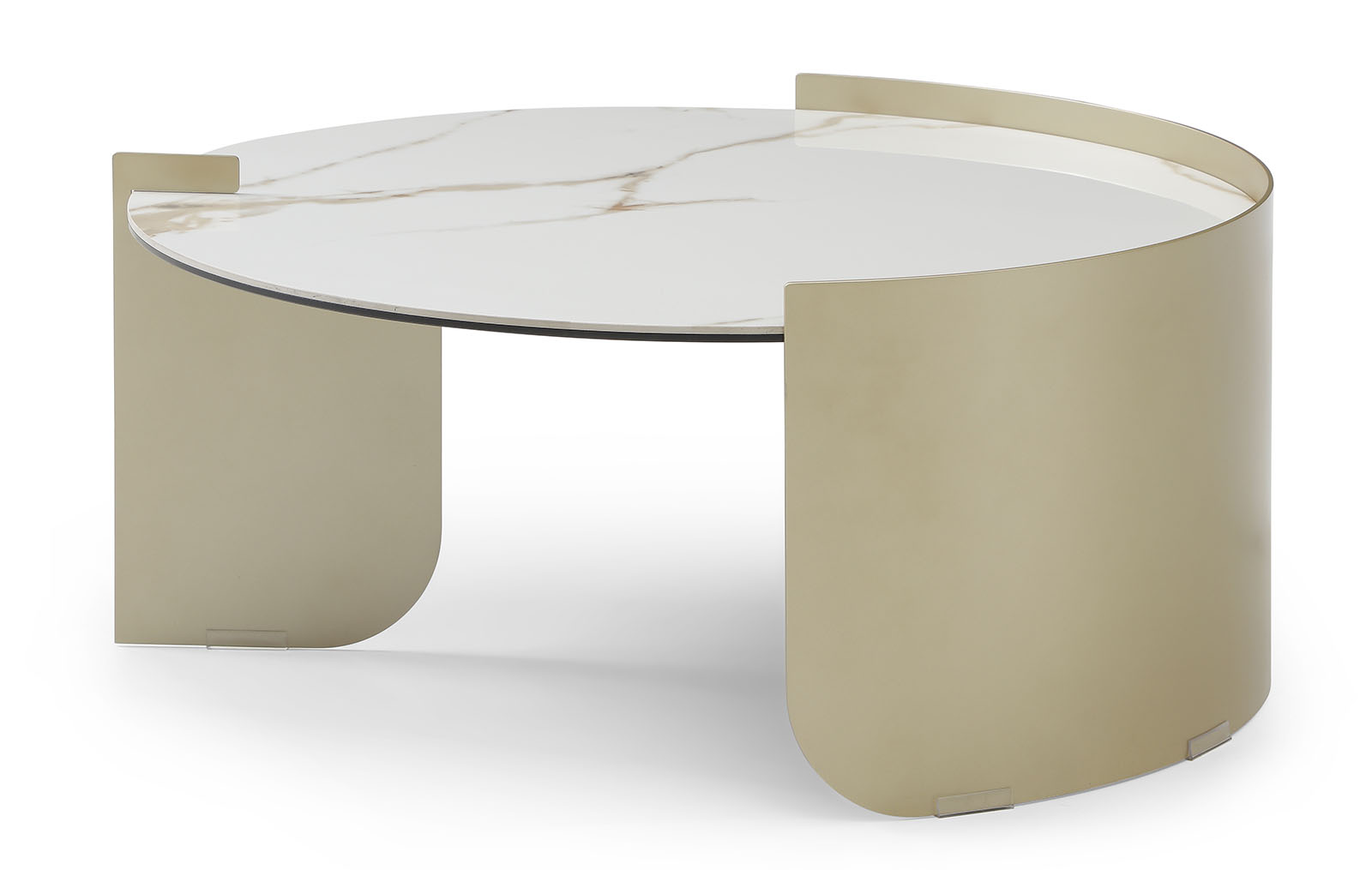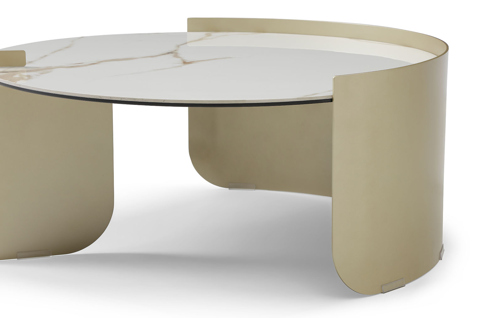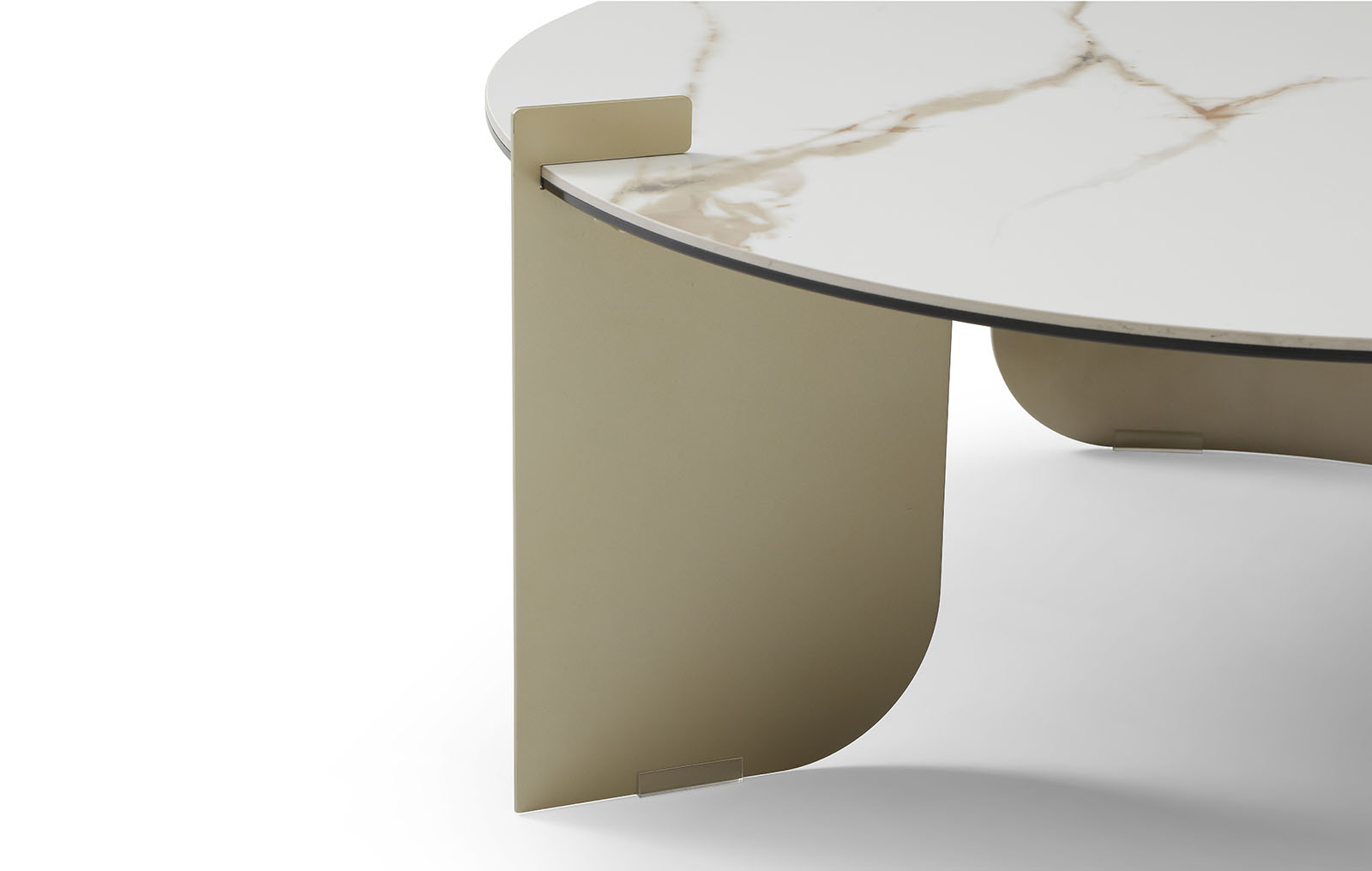 Металлическое подстолье в оттенке золотистый шампань придаёт конструкции визуальную лёгкость и современный характер, оставаясь при этом прочным и устойчивым.