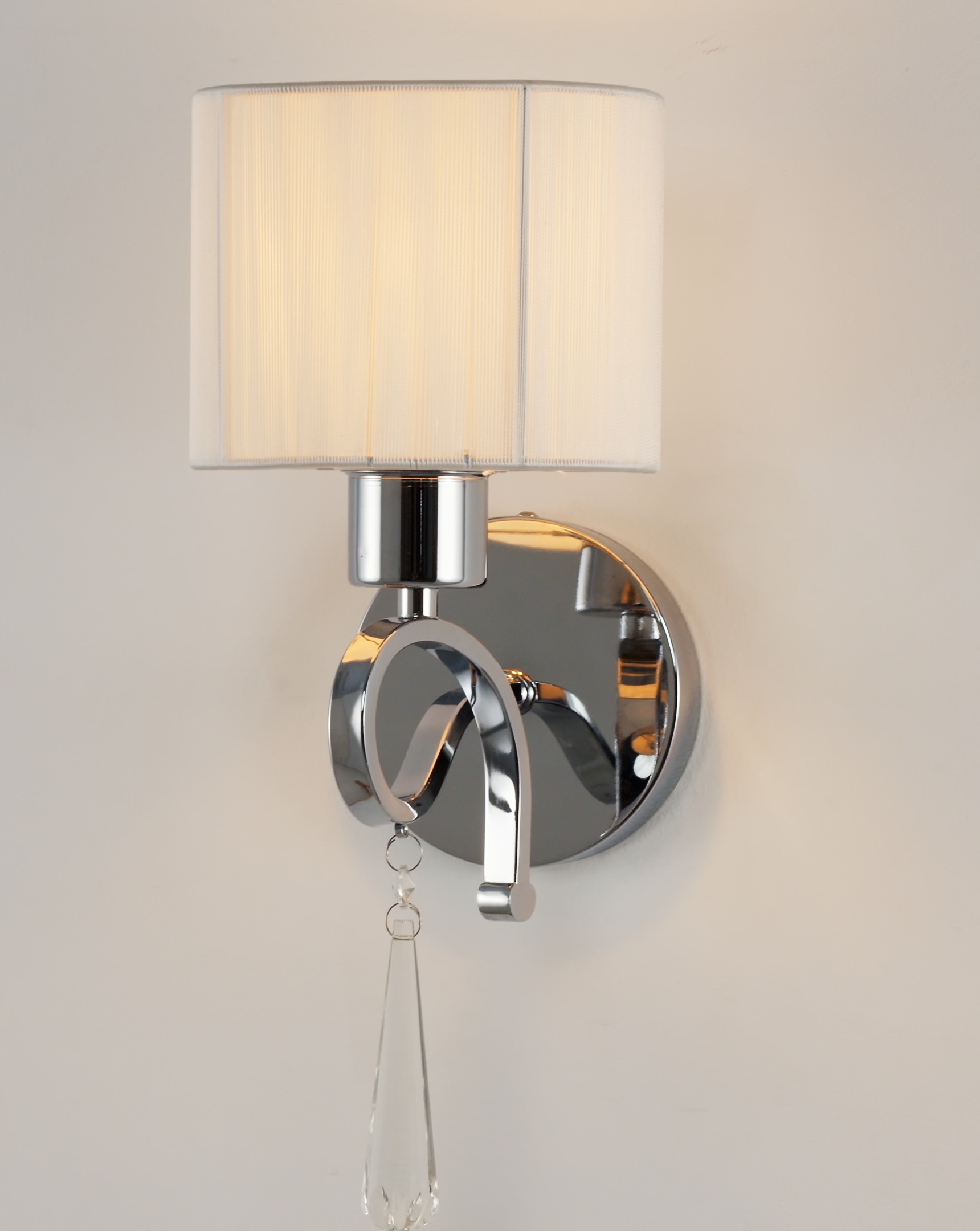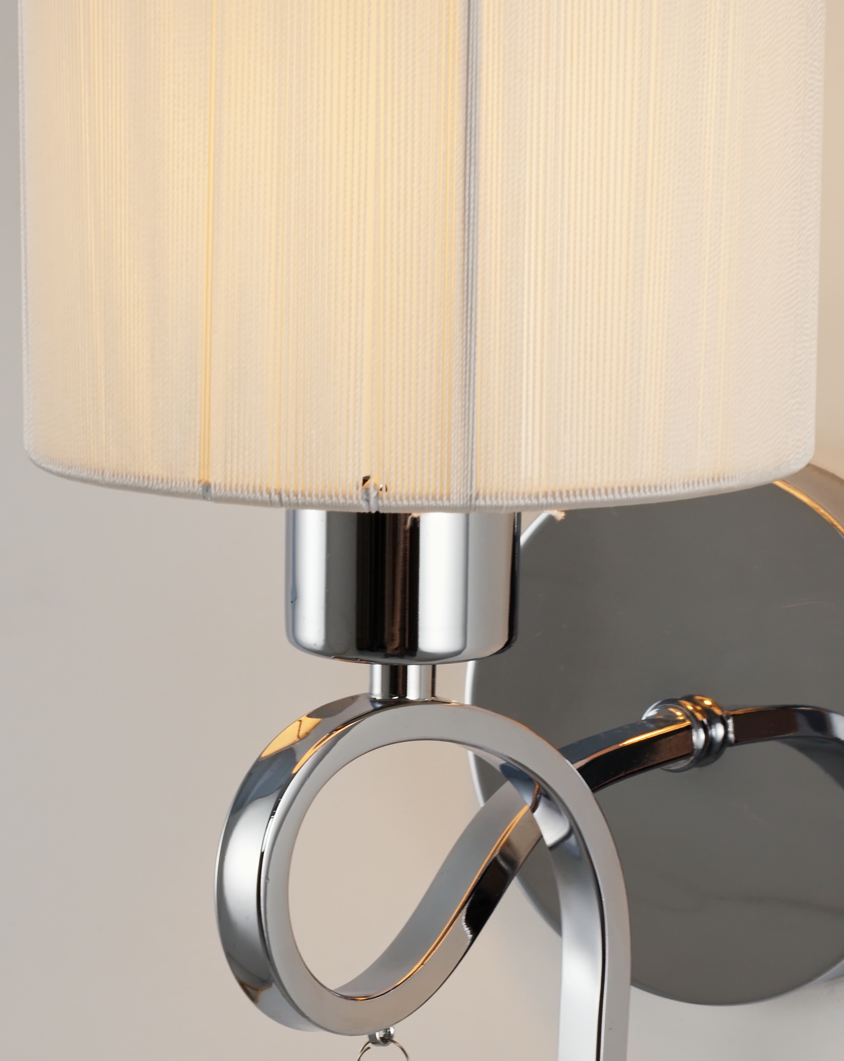 Запросить индивидуальное предложениеНастенный светильник Chilly в классическом стиле. Абажур перетянут нитями кремового цвета для мягкого рассеивания света и создания атмосферы уюта и теплоты. Корпус из качественного металла цвета стали украшен камнем в виде капли, который дополняет витиеватый дизайн светильника. Нежная цветовая гамма бра поможет украсить любой современный интерьер и подходит для дополнительного освещения спальни, гостиной и холла.