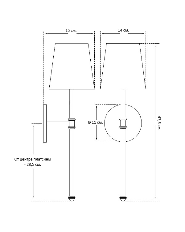 Размер абажура: 15 см. х Ø 10 см. – Ø 14 см.