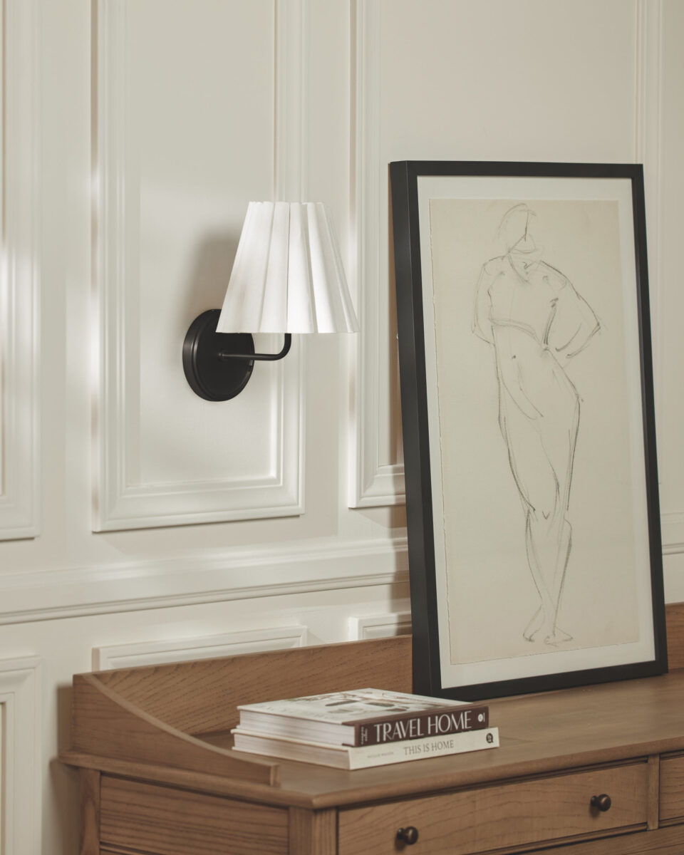 Запросить индивидуальное предложениеЧёрное бра “Джилл” – это сочетание белого плиссированного абажура и отделки в чёрном цвете, которая создает завораживающий эффект, добавляя изысканности в ваш интерьер. Настенный светильник отличается своим неповторимым дизайном, воплощая в себе сочетание современности и классики. Белый плиссированный абажур создает приятную и мягкую обстановку, рассеивая свет в нежных тонах и создавая уютную атмосферу. Это бра идеально вписывается в любой стиль интерьера, от классического до современного. Оно прекрасно сочетается с другими светильниками и создает гармоничное освещение в комнате. Вы можете использовать его в спальне, гостиной, кабинете или гостевой комнате, чтобы добавить изысканности и утонченности в ваш дом. Независимо от стиля вашего дома, это бра подарит вам комфортное и приятное освещение, создавая уютную обстановку в вашем доме.