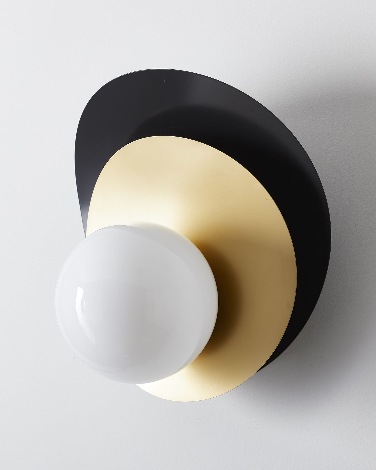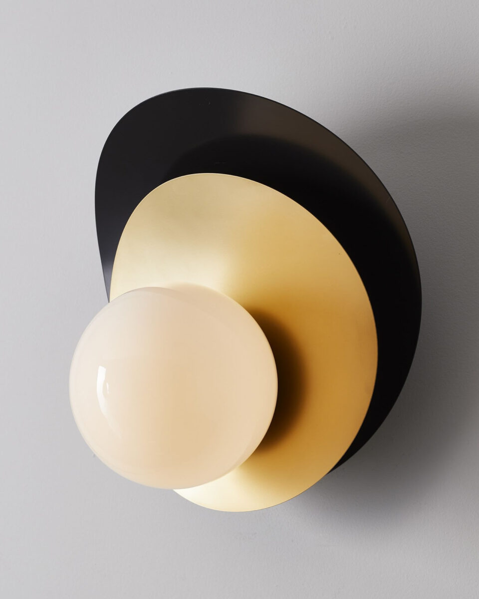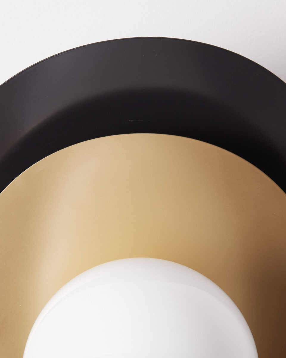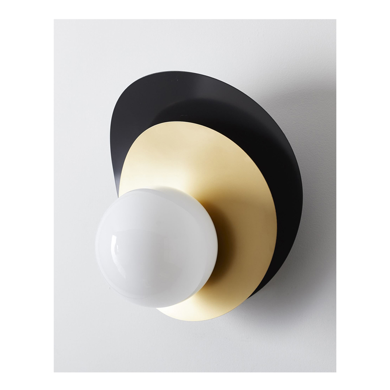 Запросить индивидуальное предложениеНастенный светильник “Оливия” – идеальное дополнение к вашему современному интерьеру. Этот светильник будет привлекать взгляды и создавать неповторимую атмосферу в любом помещении. Главной особенностью этого светильника является его эффектный дизайн. Светильник оснащен двумя абажурами, выполненными из металла. Абажуры парят над стеклянным шаром молочного цвета, создавая нежное и приятное освещение. Кроме того, двухцветная отделка – античная латунь и чёрный, придает светильнику стильный вид и делает его универсальным для различных интерьеров. Этот светильник не только обеспечит вас ярким и качественным освещением, но и станет стильным акцентом в вашем помещении. Он прекрасно подойдет для гостиной или спальни, подчеркивая ваш вкус и дополняя общий стиль интерьера.
