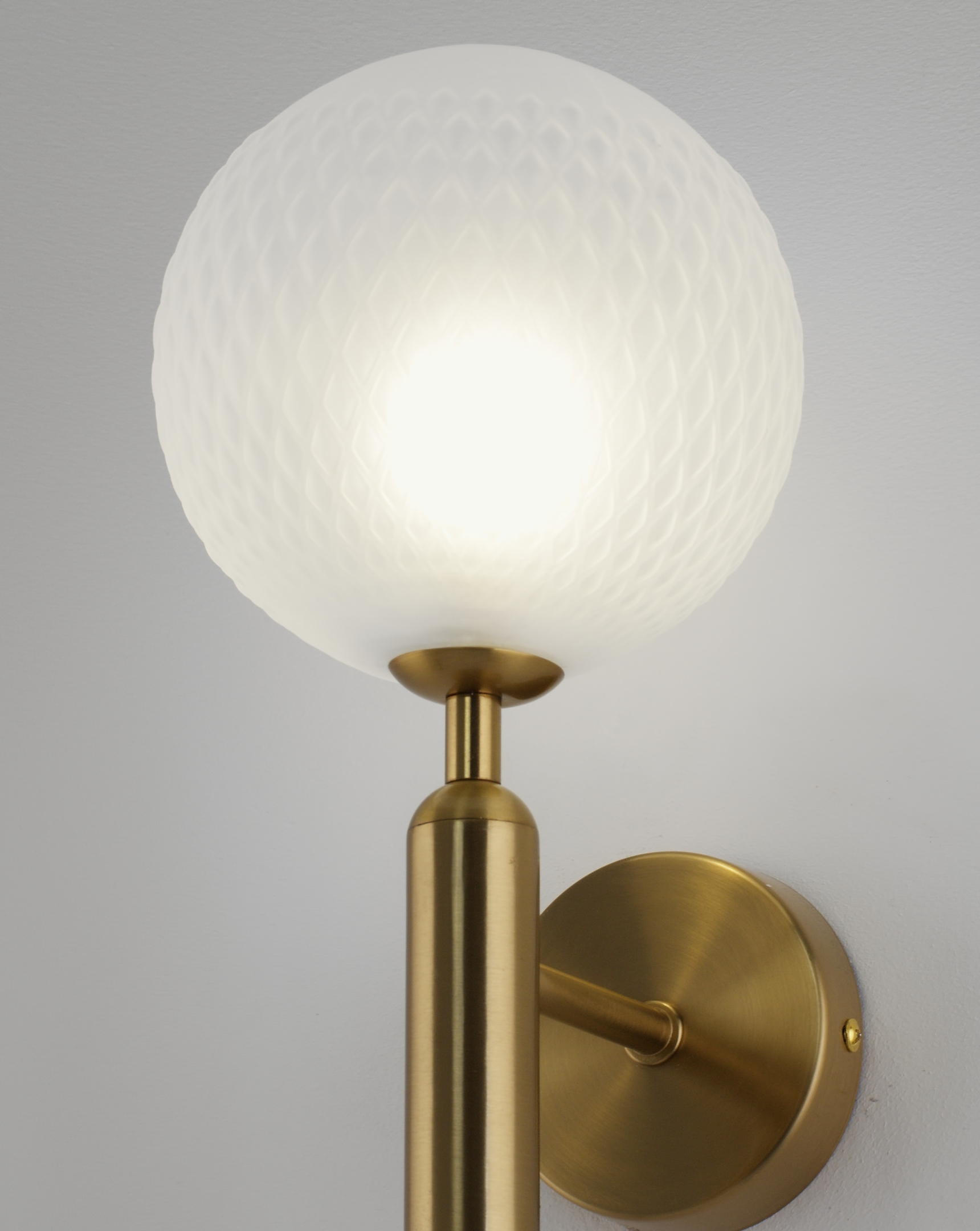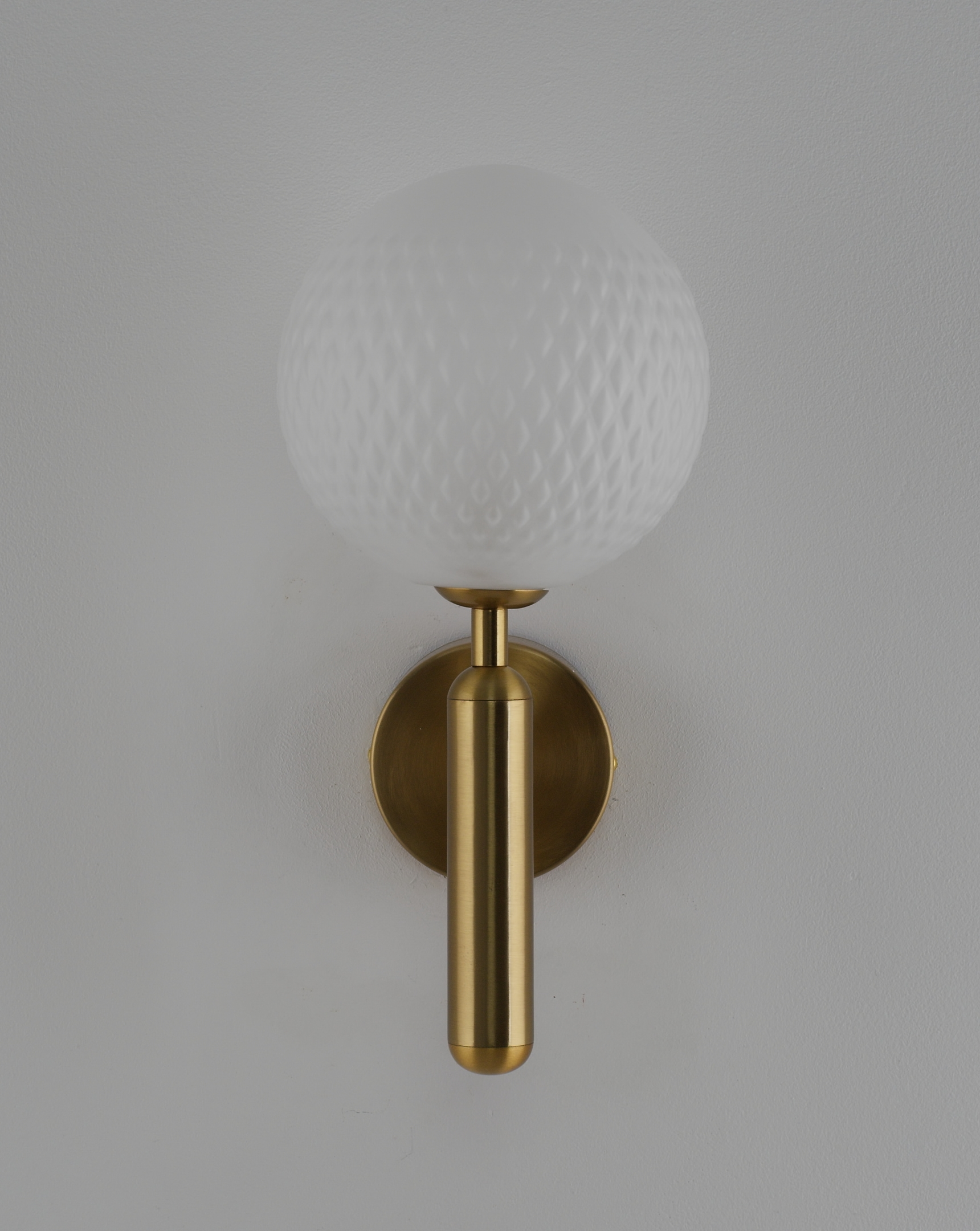 Дизайн и материалы. Модель обладает элегантным современным дизайном, который подойдет для различных интерьеров. Плафон изготовлен из качественного матового стекла округлой формы, которое обеспечивает мягкое рассеянное освещение, в то время как золотистый корпус из металла придает светильнику стиль и долговечность. Это гармоничное сочетание материалов создает эффект роскоши и утонченности, добавляя шарм в любой комнате.
