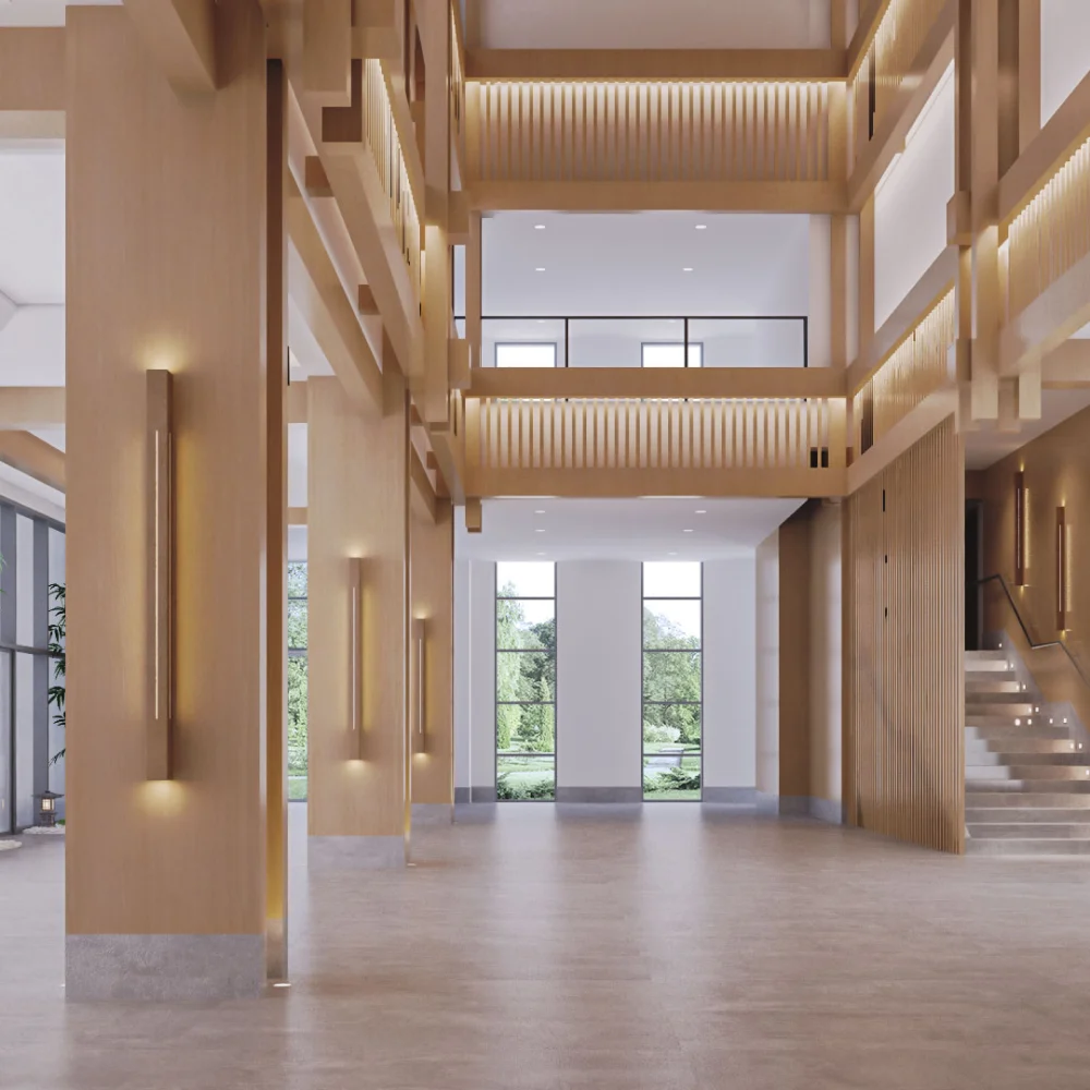 Лаконичный приглушённый свет модели проходящий сквозь прорези по всей длине с трёх сторон, а так же вверх и вниз преобразит любое пространство - освещения лестничного пролёта загородного дома, стильный офис, гостиница или атмосферное заведение, подчеркнув индивидуальность интерьера.