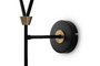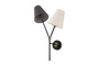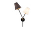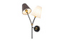 Запросить индивидуальное предложениеАрматура - металл, цвет — чёрный. Декоративные крепления и вставки цвета латуни. Тканевые абажуры в форме конуса из микса теплых цветов: бежевый и коричневый. Открытые верхние основания абажуров пропускают дополнительный свет. Динамичный дизайн в стиле Casual. Источник света — лампа с цоколем Е14.