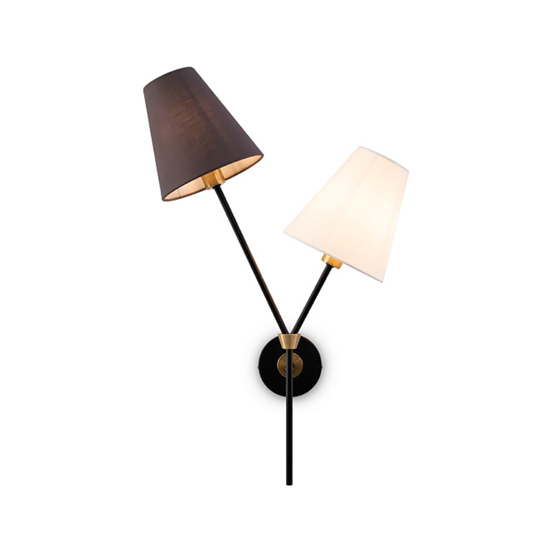 Запросить индивидуальное предложениеАрматура - металл, цвет — чёрный. Декоративные крепления и вставки цвета латуни. Тканевые абажуры в форме конуса из микса теплых цветов: бежевый и коричневый. Открытые верхние основания абажуров пропускают дополнительный свет. Динамичный дизайн в стиле Casual. Источник света — лампа с цоколем Е14.
