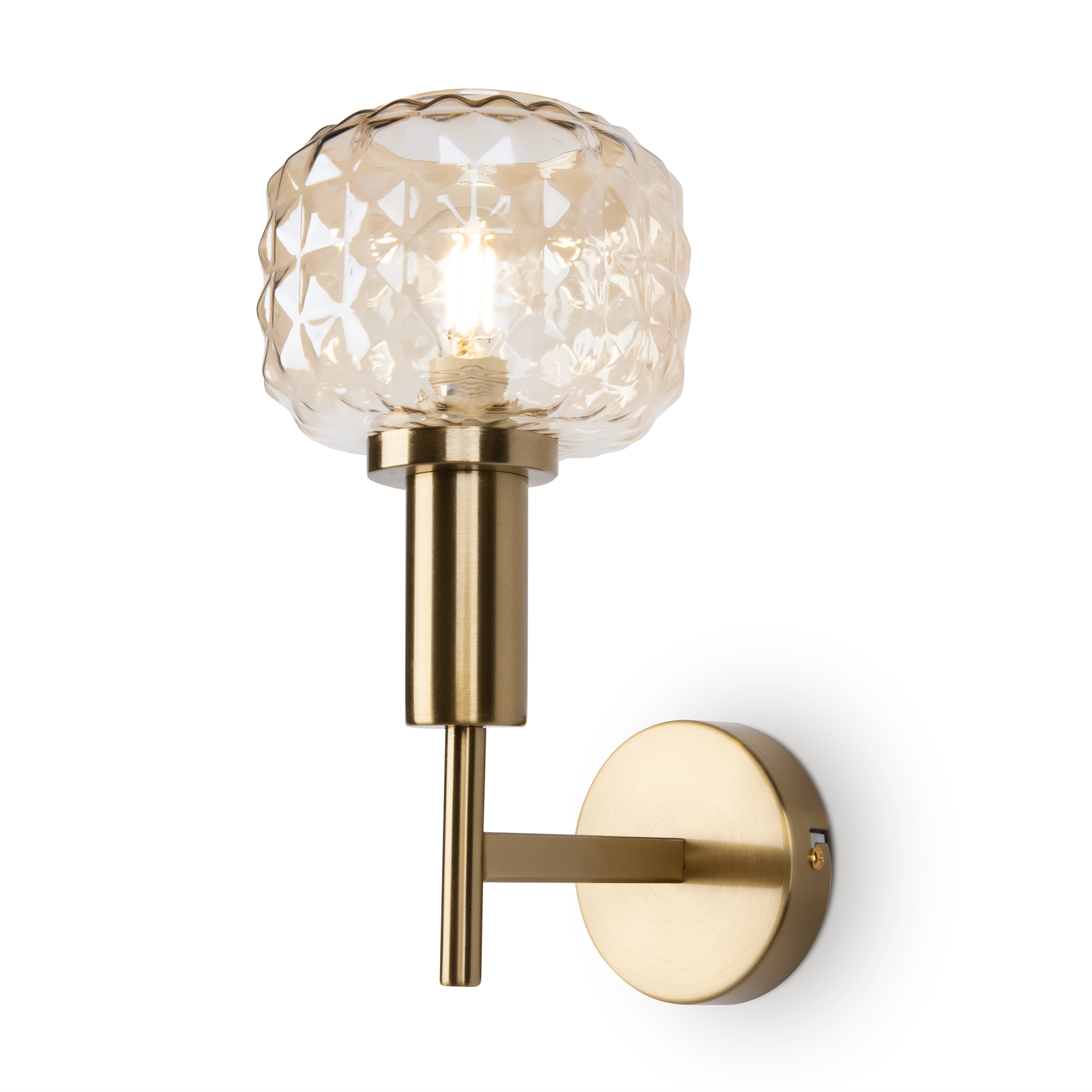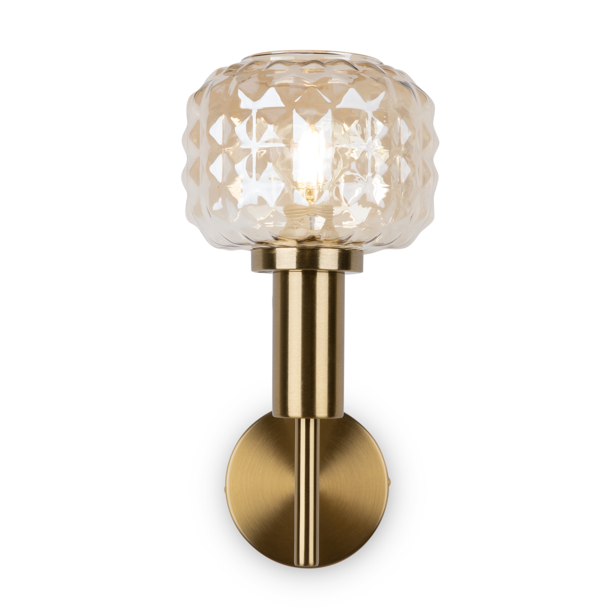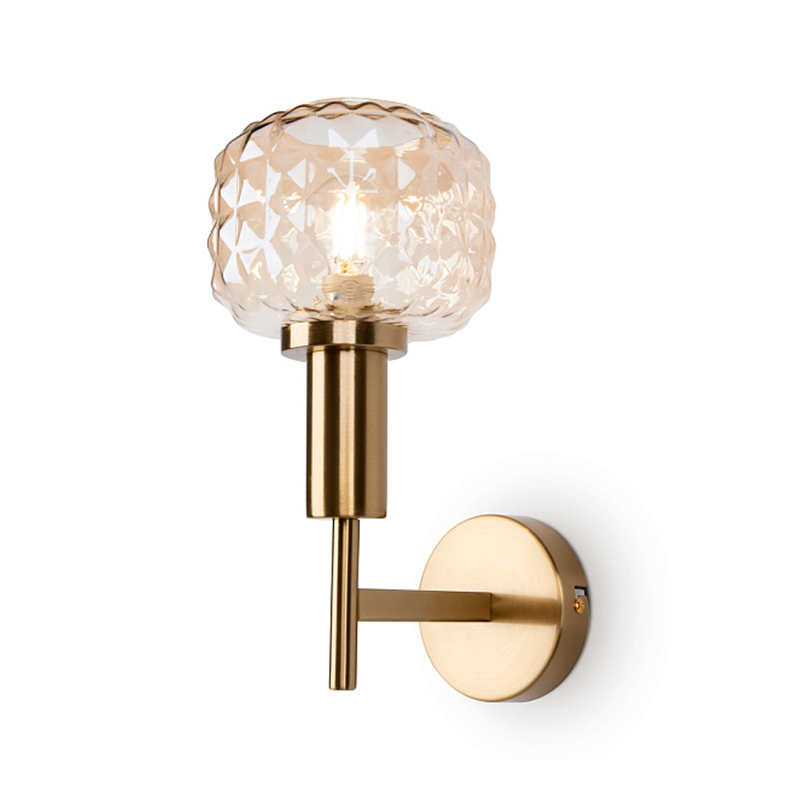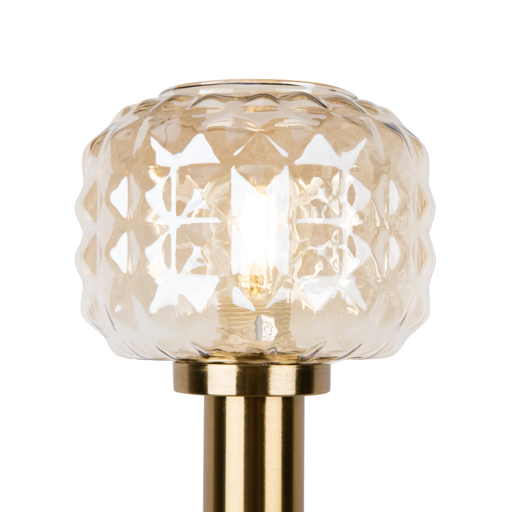 Запросить индивидуальное предложениеМеталлическая арматура в цвете латунь. Плафоны из толстого рельефного стекла в оттенке амбра с «шипованной» огранкой. Подвесные модели регулируется по высоте. Источник света - лампа с цоколем Е14