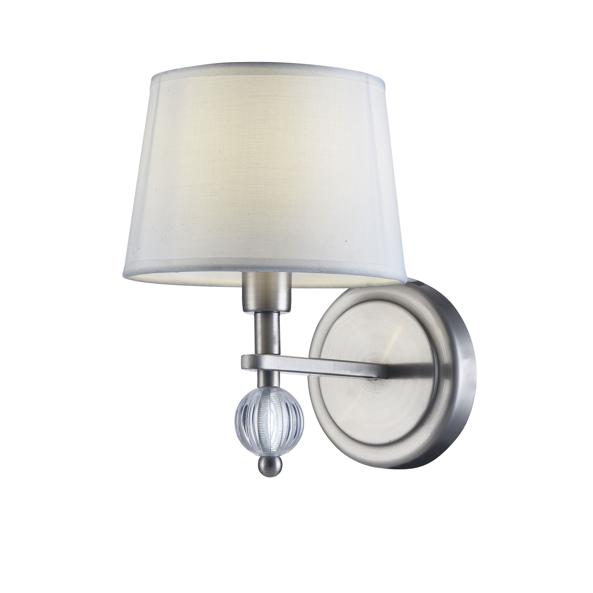 Запросить индивидуальное предложениеСерия светильников для интерьеров гостиных, спален и офисов в современном стиле. Арматура из метала цвета “никель” дополнена декоративными элементами из прозрачного акрила (шарики). Белые абажуры из текстиля на ПВХ.