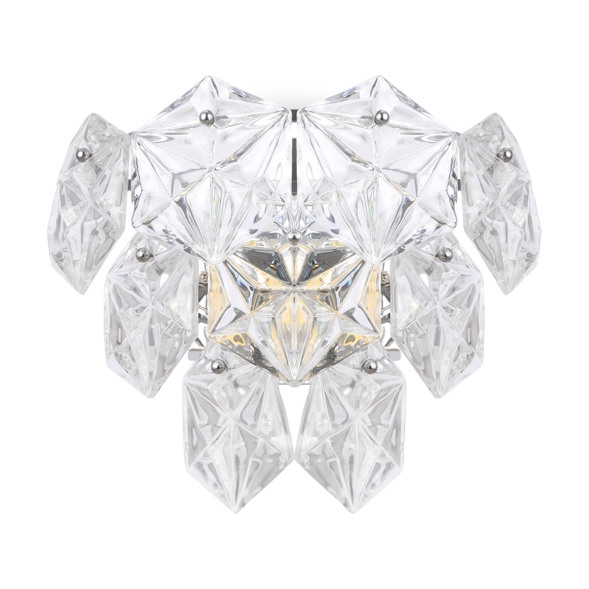 Запросить индивидуальное предложениеСерия Molly – это современная трактовка хрусталя в интерьере. Крупные стекла-шестигранники преломляют свет множества ламп и создают причудливую игру бликов. Арматура в цвете хром добавляет современность облику серии Molly. Серия состоит из люстр на 9 и 12 ламп и бра на 2 лампы. Высота люстр регулируется длиной цепи.