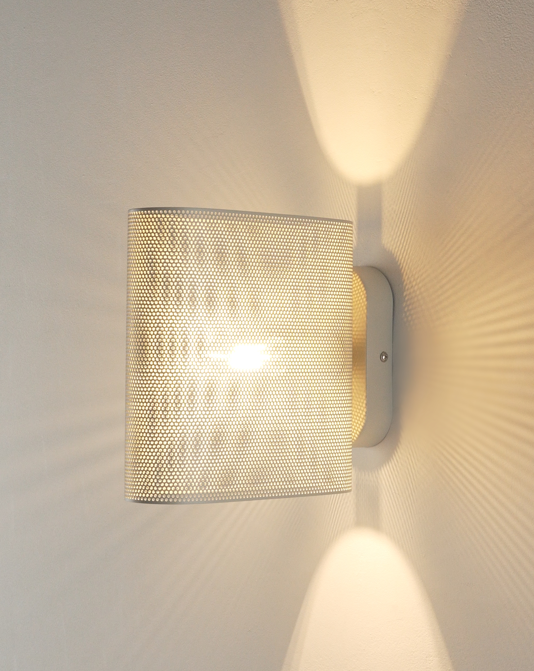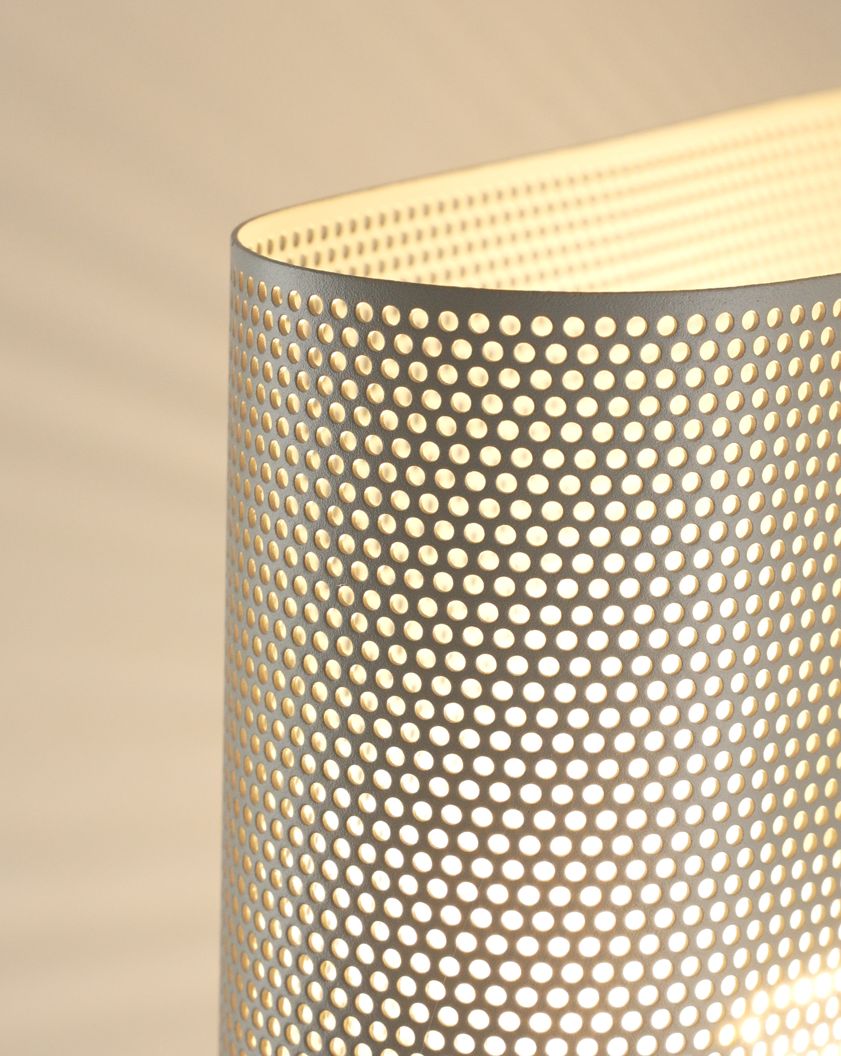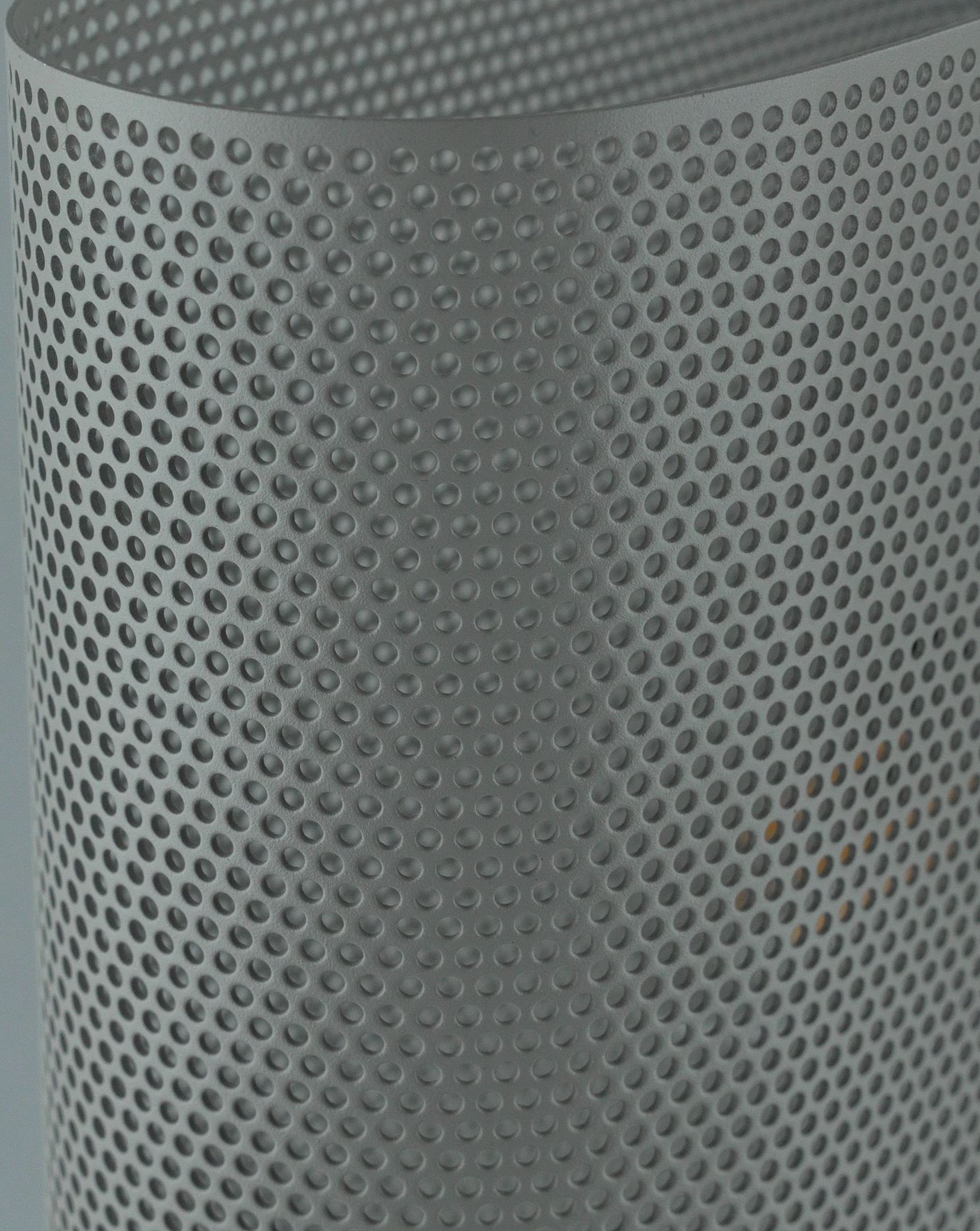 Корпус и плафон выполнены из прочного металла с матовым покрытием в благородном сером цвете. Перфорация не только создаёт декоративный эффект, но и обеспечивает мягкое рассеивание света, создавая уютную атмосферу.