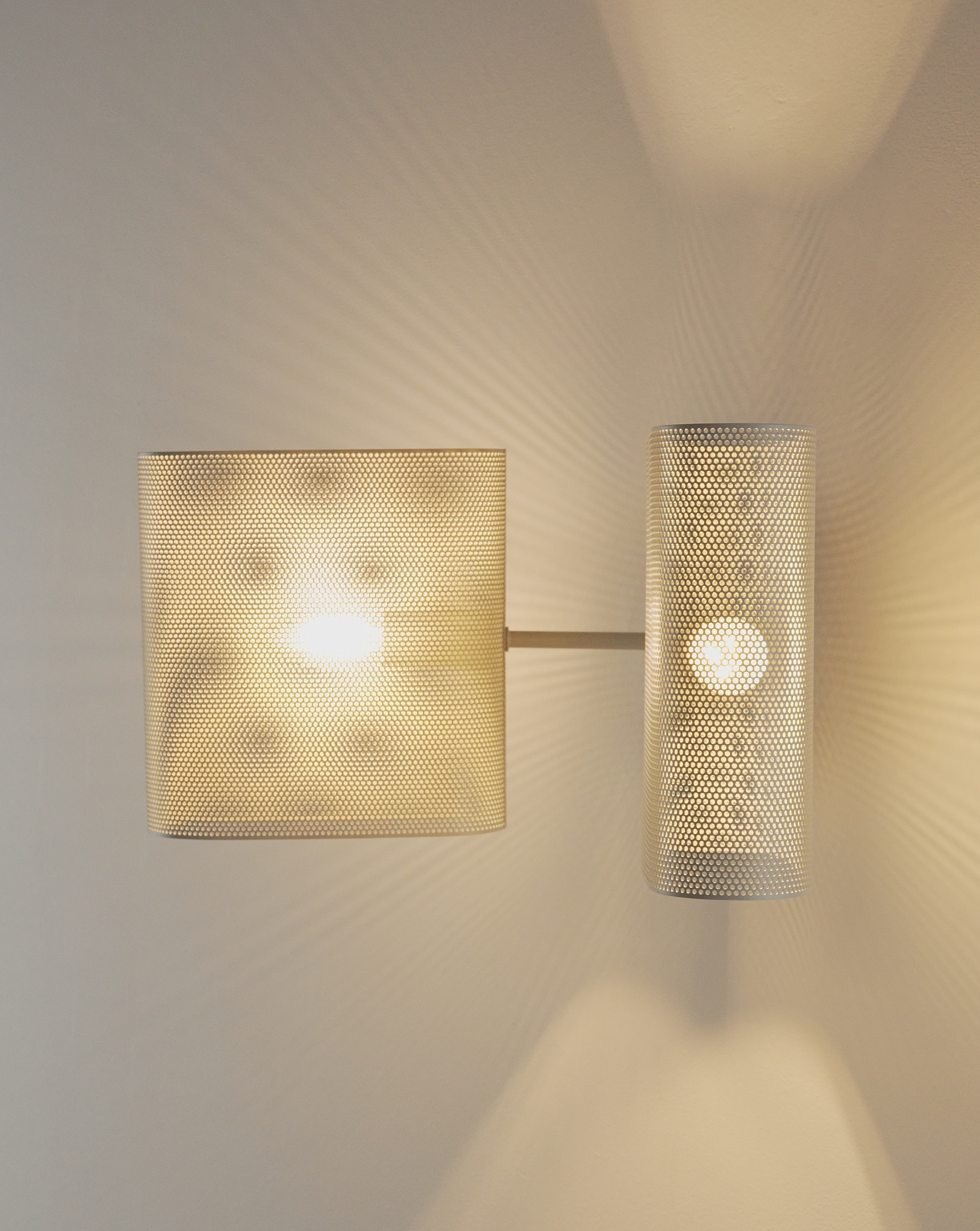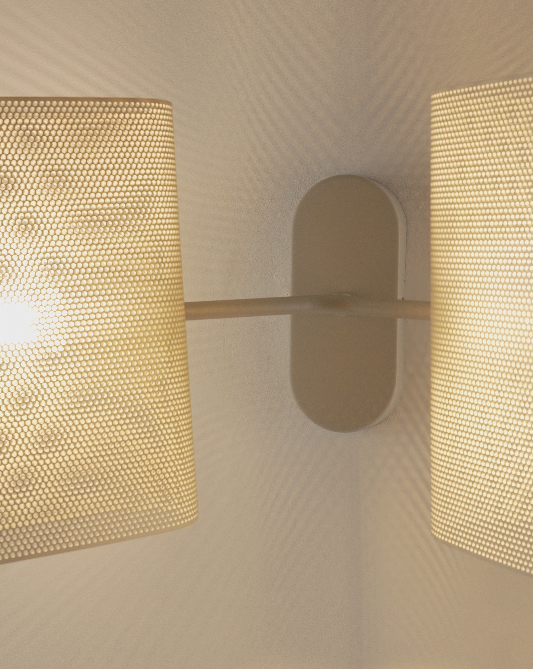 Корпус и плафоны выполнены из прочного металла с матовым покрытием в благородном сером цвете. Перфорация не только создаёт декоративный эффект, но и обеспечивает мягкое рассеивание света, создавая уютную атмосферу.