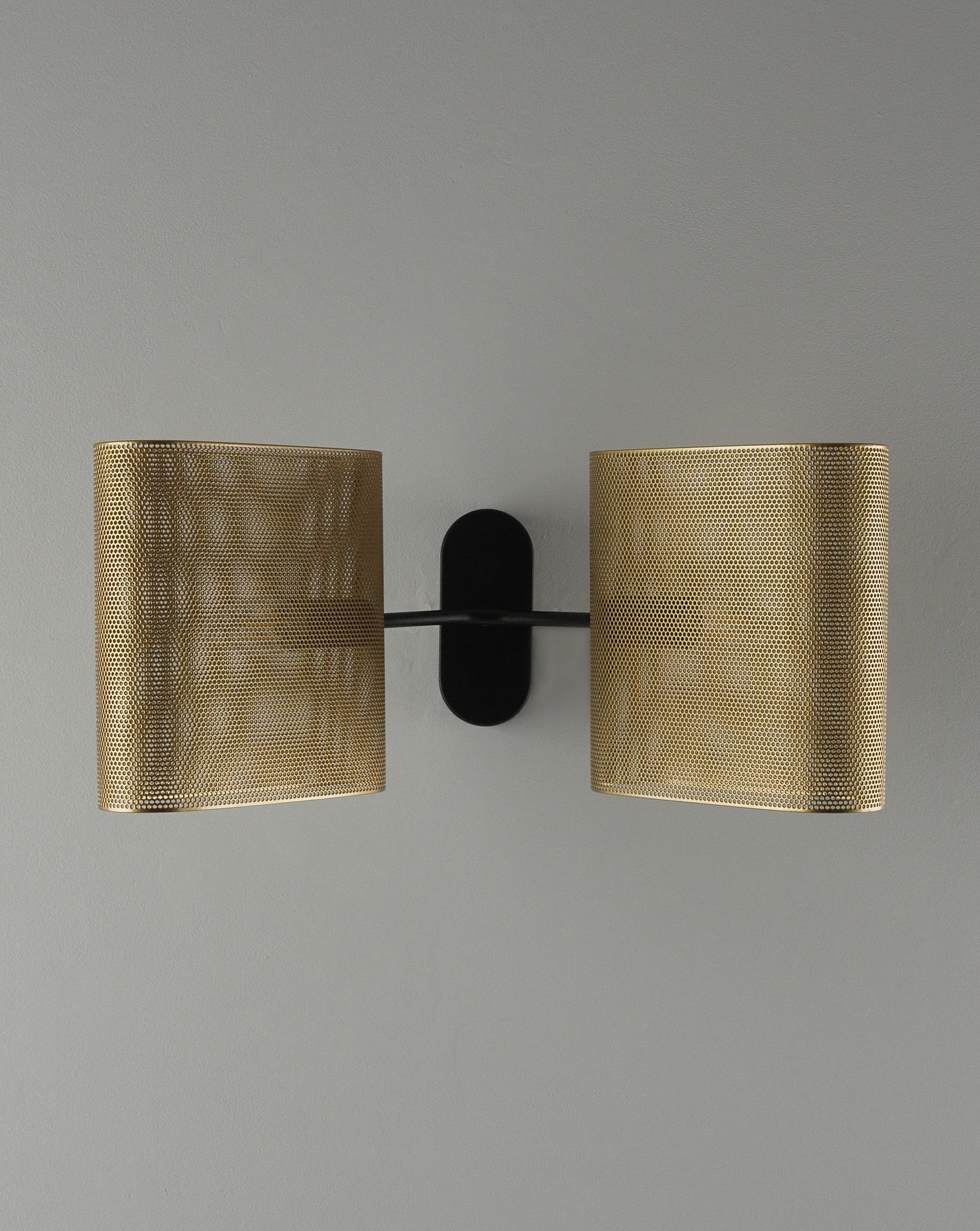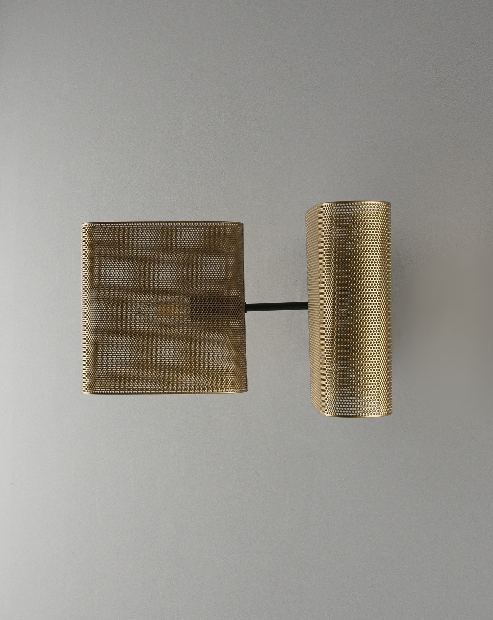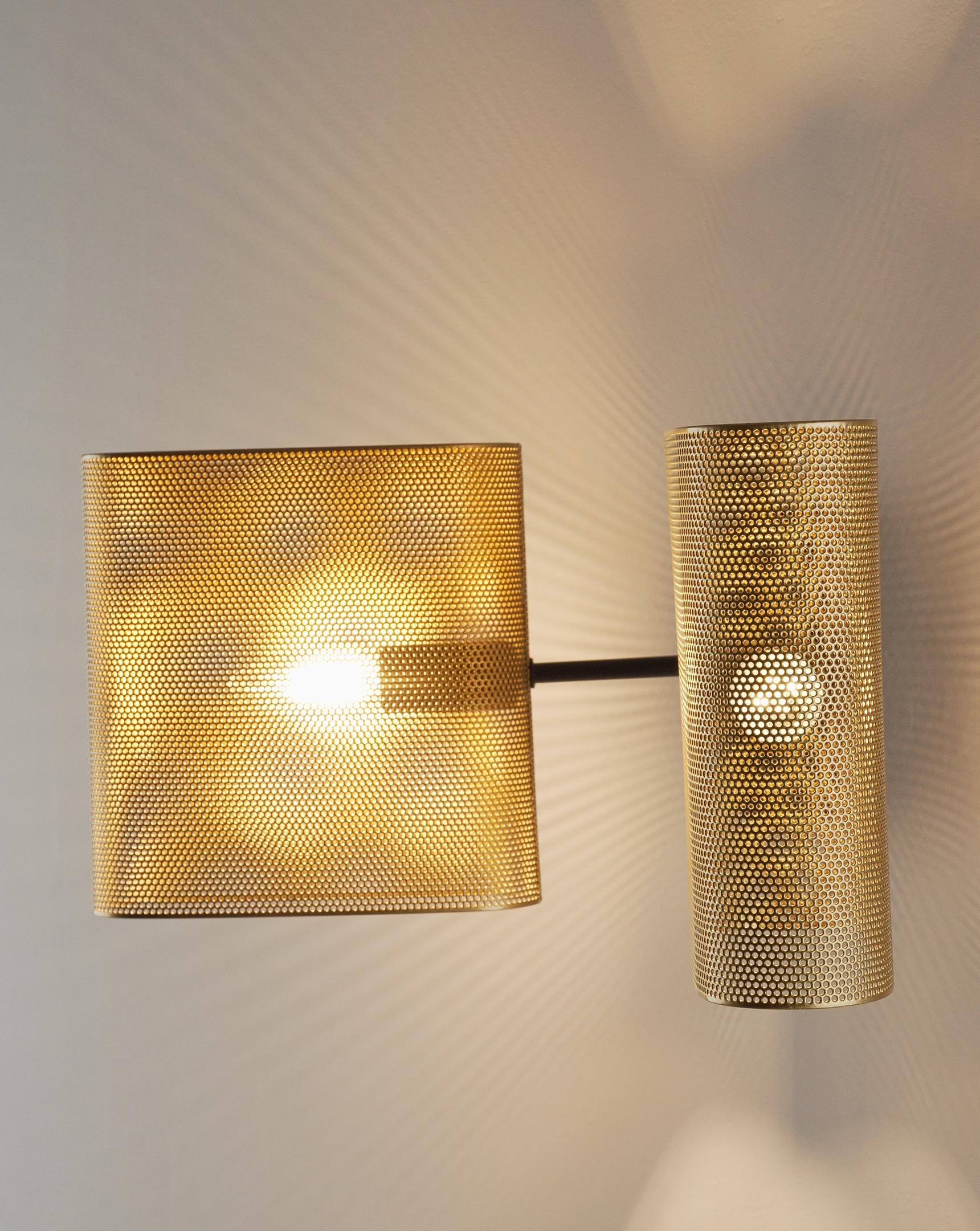 Корпус и плафоны выполнены из прочного металла с матовым покрытием в благородном золотистом цвете. Перфорация не только создаёт декоративный эффект, но и обеспечивает мягкое рассеивание света, создавая уютную атмосферу.