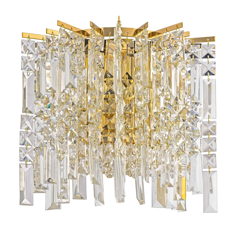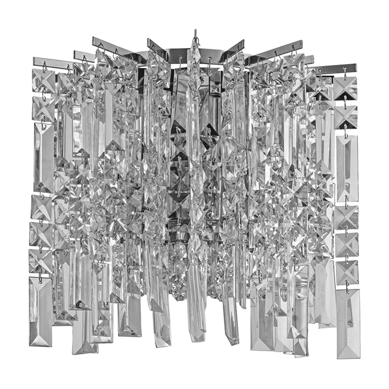 Визуальный эффект: Разная длина свисающих призм создает неровный, рваный нижний край, что придает светильнику динамику и напоминает сверкающий водопад или сталактиты в пещере. При включении света такое бра будет давать множество бликов и радужных отражений.