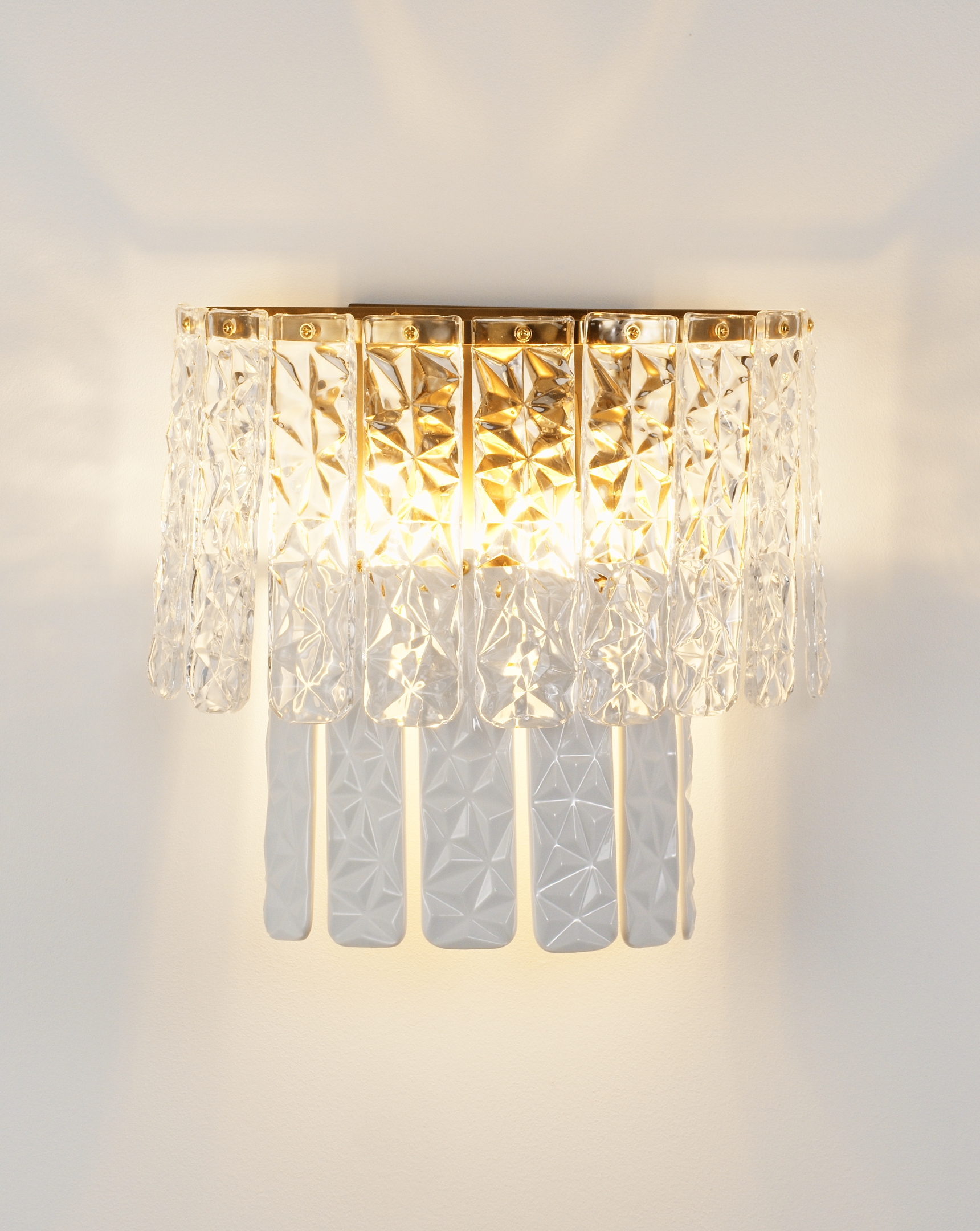 Запросить индивидуальное предложениеНастенный светильник из серии Alberto. Металлический каркас украшен прозрачным декором из стекла и белыми вставками, которые добавляют разнообразия в дизайн. В качестве источника света могут подойти лампы с цоколем Е14. Изящный стиль и лаконичный дизайн бра придаст свежесть и разбавит интерьер комнаты светлыми тонами.