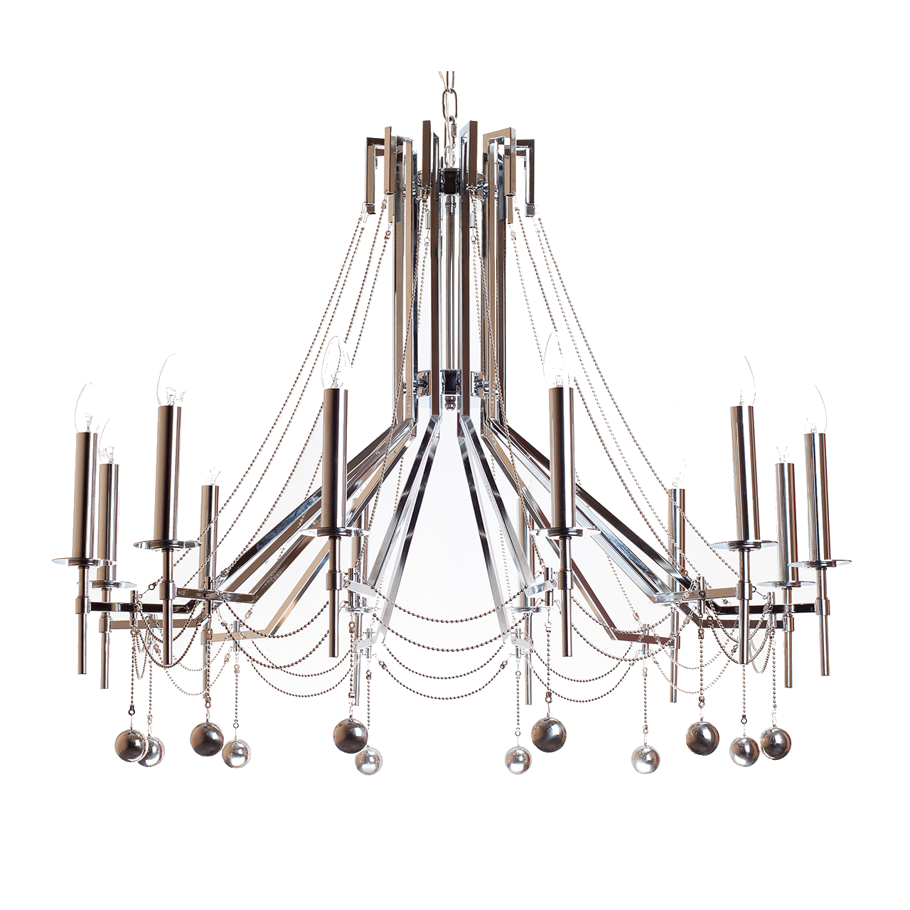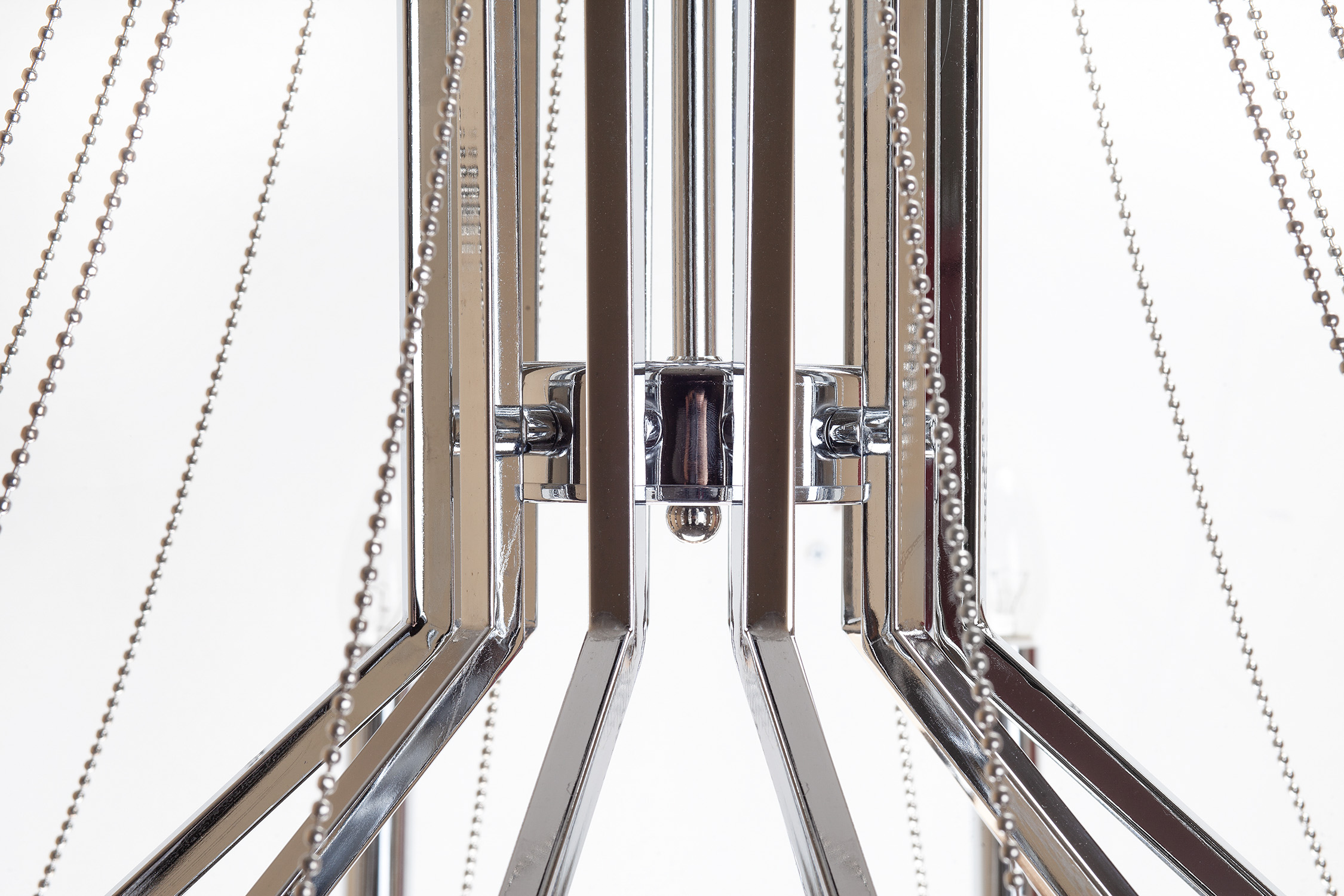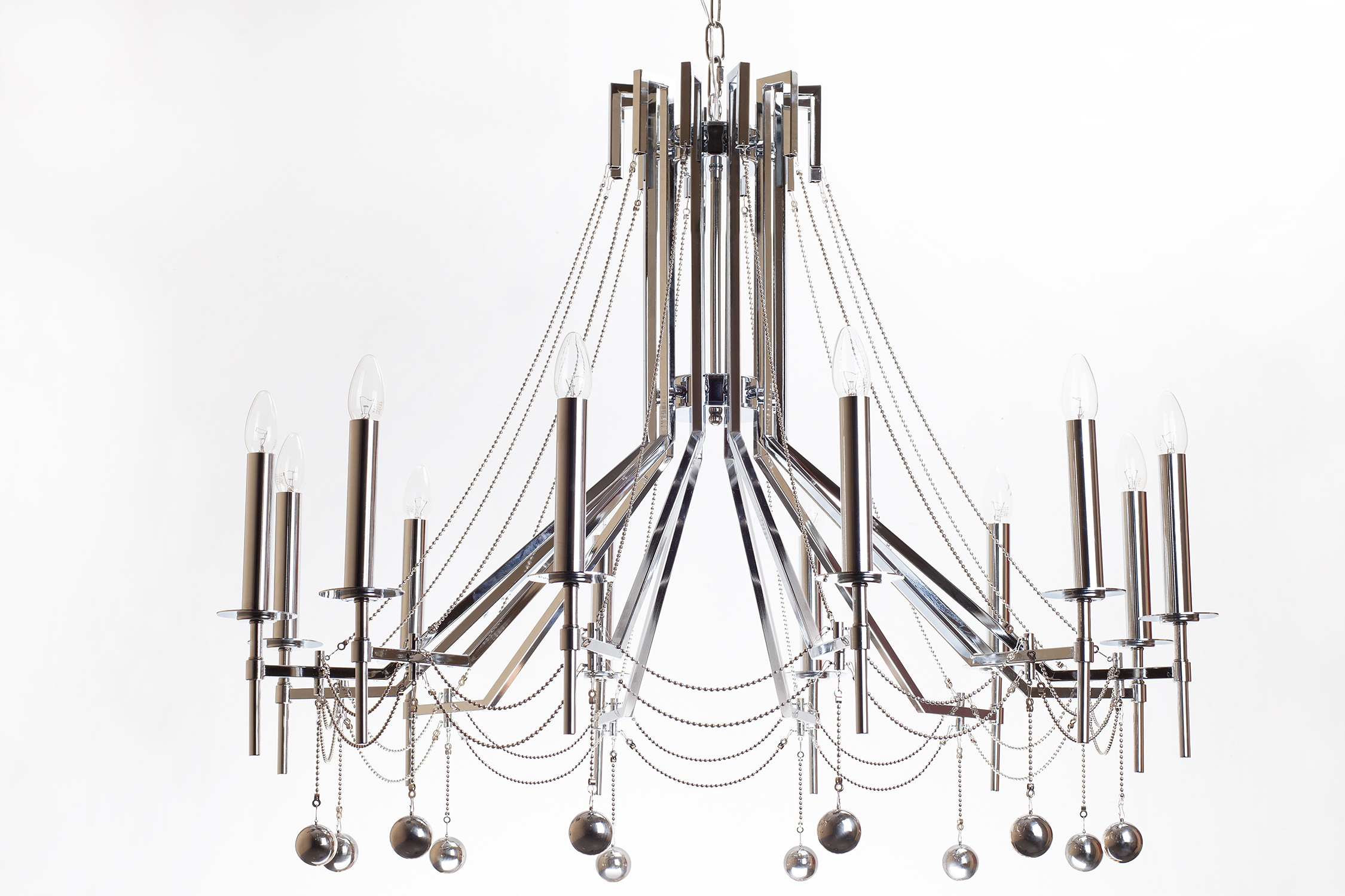 Запросить индивидуальное предложение Люстра Rocco Silver 12 сложной конструкции из стилизованного под серебро металла. Состоит из множества изящных элементов разных форм. От верхнего основания модели отходят тонкие стержни с квадратным сечением, которые, дважды изогнувшись под углом 135 градусов, переходят в держатели для ламп.