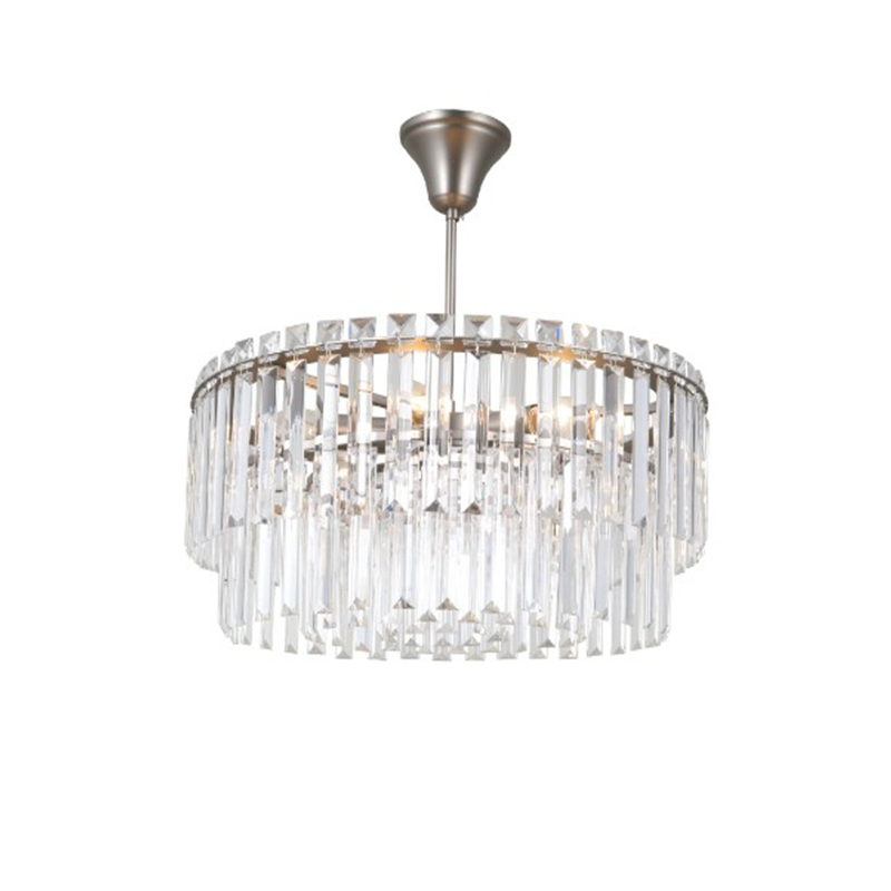 Запросить индивидуальное предложениеПодвесная люстра Crystal в современном стиле. Металлический каркас дополнен вставками из прозрачного хрусталя, которые создают изумительную игру света при освещении. Стильный дизайн люстры дополнит любой современный интерьер, с площадью освещения 15 кв. м люстра станет идеальным выбором для больших комнат, а также для обеденной зоны или зала. В качестве источника света подойдут лампы с цоколем Е14 в количестве 6 штук. При необходимости высоту люстры можно отрегулировать с помощью подвесной цепи.