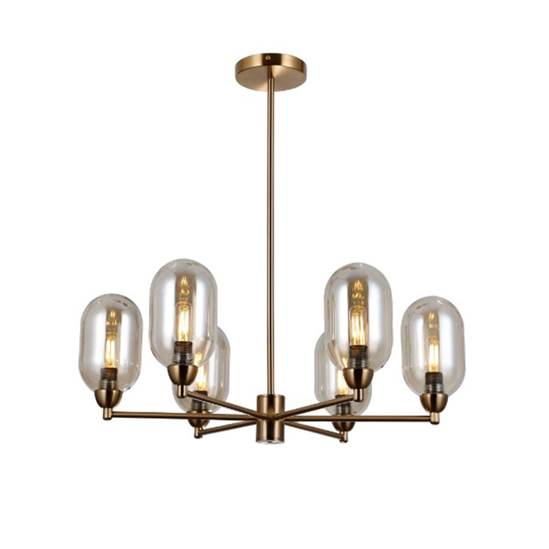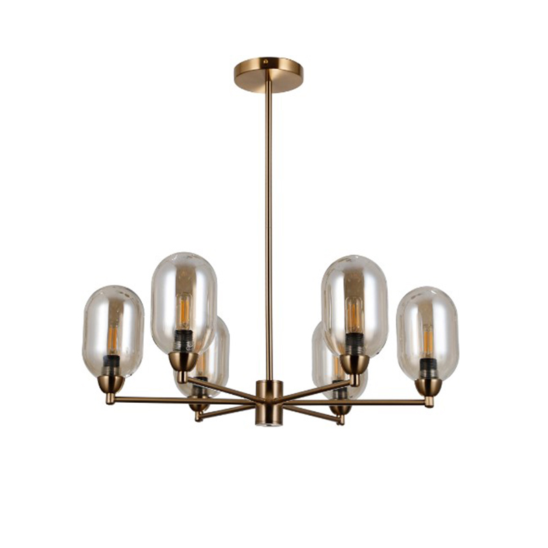 Запросить индивидуальное предложениеПодвесная люстра Gracy в современном стиле. Металлический каркас золотистого цвета дополнен плафонами. Стильный дизайн люстры дополнит любой современный интерьер, с площадью освещения 8 кв. м люстра станет идеальным выбором для больших комнат, а также для обеденной зоны или зала. В качестве источника света подойдут лампы с цоколем Е14 в количестве 6 штук.