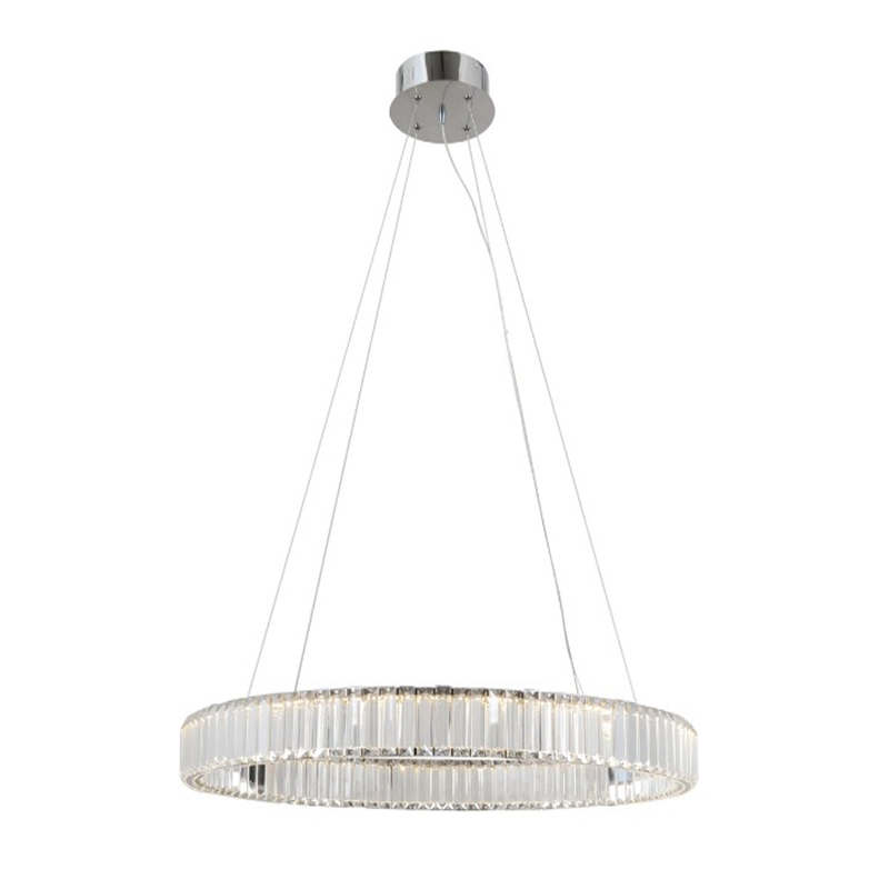 Запросить индивидуальное предложениеПодвесная люстра Asti в современном стиле. Металлический каркас золотого цвета дополнен вставками из прозрачного хрусталя, которые создают изумительную игру света при освещении. Стильный дизайн люстры дополнит любой современный интерьер, с площадью освещения 13 кв. м люстра станет идеальным выбором для больших комнат, а также для обеденной зоны или зала. В качестве источника света используется LED лента мощностью 40 Вт. При необходимости высоту люстры можно отрегулировать с помощью подвесной цепи.