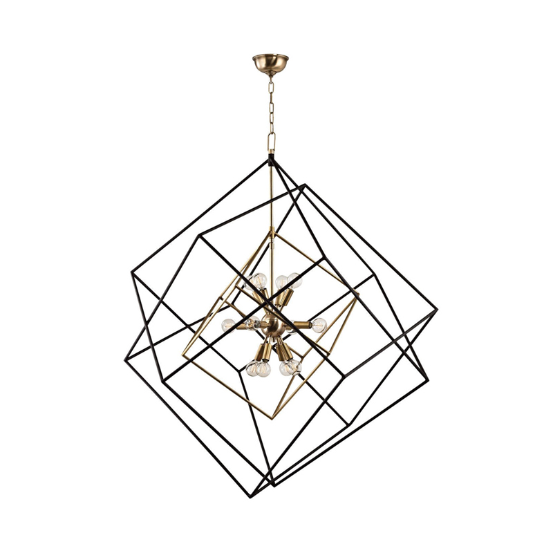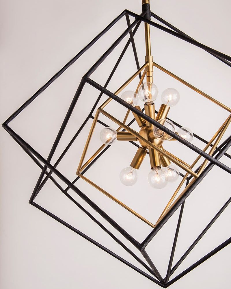 Запросить индивидуальное предложениеКувыркающиеся кубики, застывшие в движении, окружают современный световой кластер. Черное железо с инертной текстурой контрастирует с золотистой металлической отделкой внутри. Эта люстра выглядит очень современно, напоминая об атомной эре, прославляя напряжение, которое удерживает вселенную и атом в идеальном месте.
