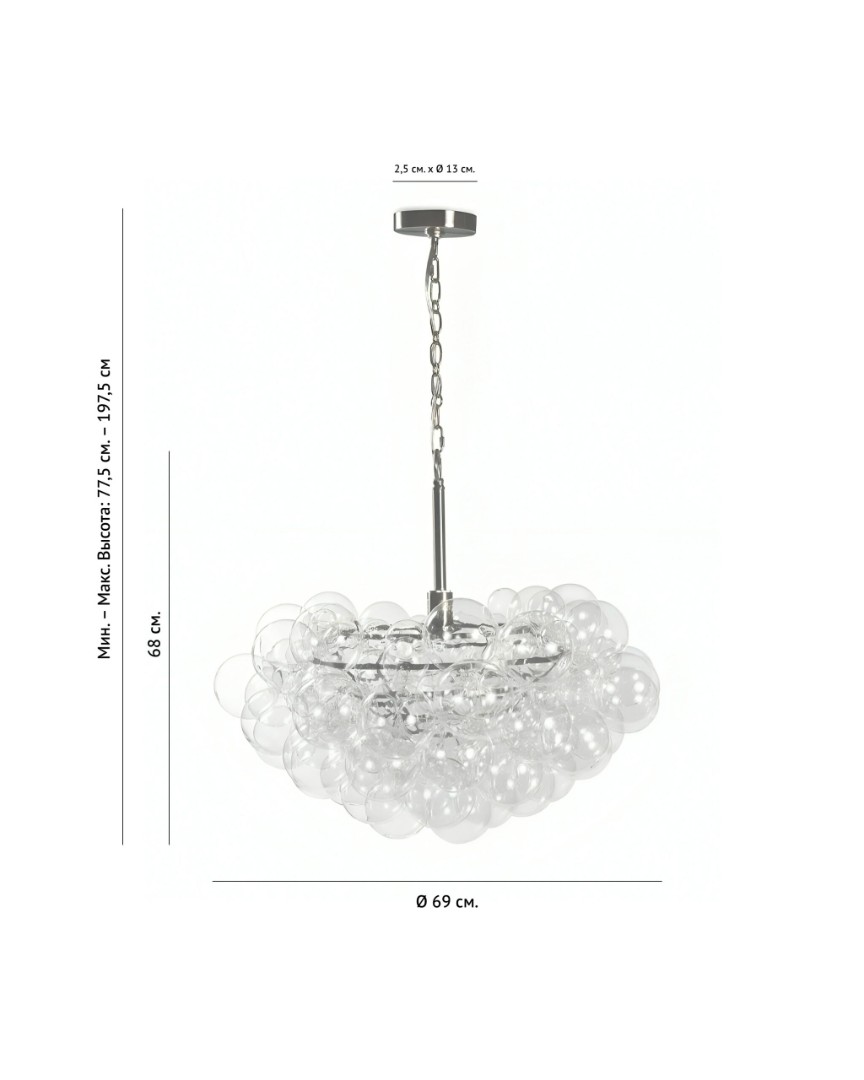 Запросить индивидуальное предложениеСеребрянная люстра “Баблс” – это уникальное изделие, которое обязательно привлечет внимание и станет прекрасным дополнением к интерьеру вашего современного дома. Эта люстра сочетает в себе стеклянные шары, которые легко отражают свет, и металлический каркас, создающий неповторимый воздушный силуэт. Вдохните новую жизнь в вашу гостиную, столовую или спальню с помощью этой изящной люстры. Этот светильник легко вписывается в любой стиль интерьера, но особенно в современный. Люстра “Баблс” доступна в универсальной цветовой гамме – никель. Такой цвет придает люстре изящность и роскошь, делая ее отличным выбором для дома в современном стиле. Шары из стекла, которые украшают эту люстру, создают игривый и причудливый эффект. Они отражают свет и создают множество прекрасных оттенков и отблесков, освещая комнату ярким и мягким светом. Люстра “Баблс” – это не просто светильник, это настоящее произведение искусства, которое станет центром внимания в вашем доме. Это изделие позволит вам создать уютную и стильную атмосферу, подчеркнуть ваше чувство стиля и придать причудливость и игривость вашему пространству.