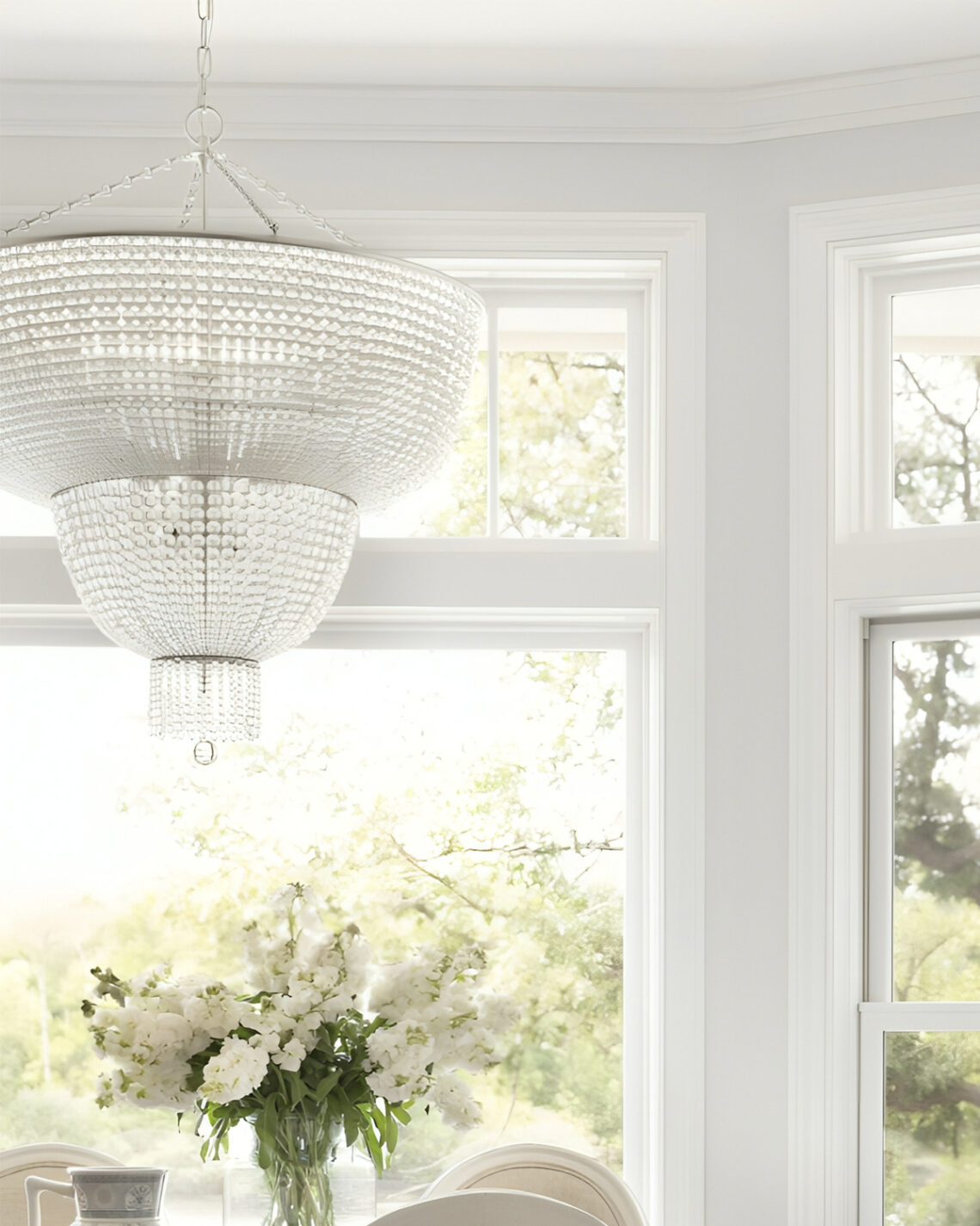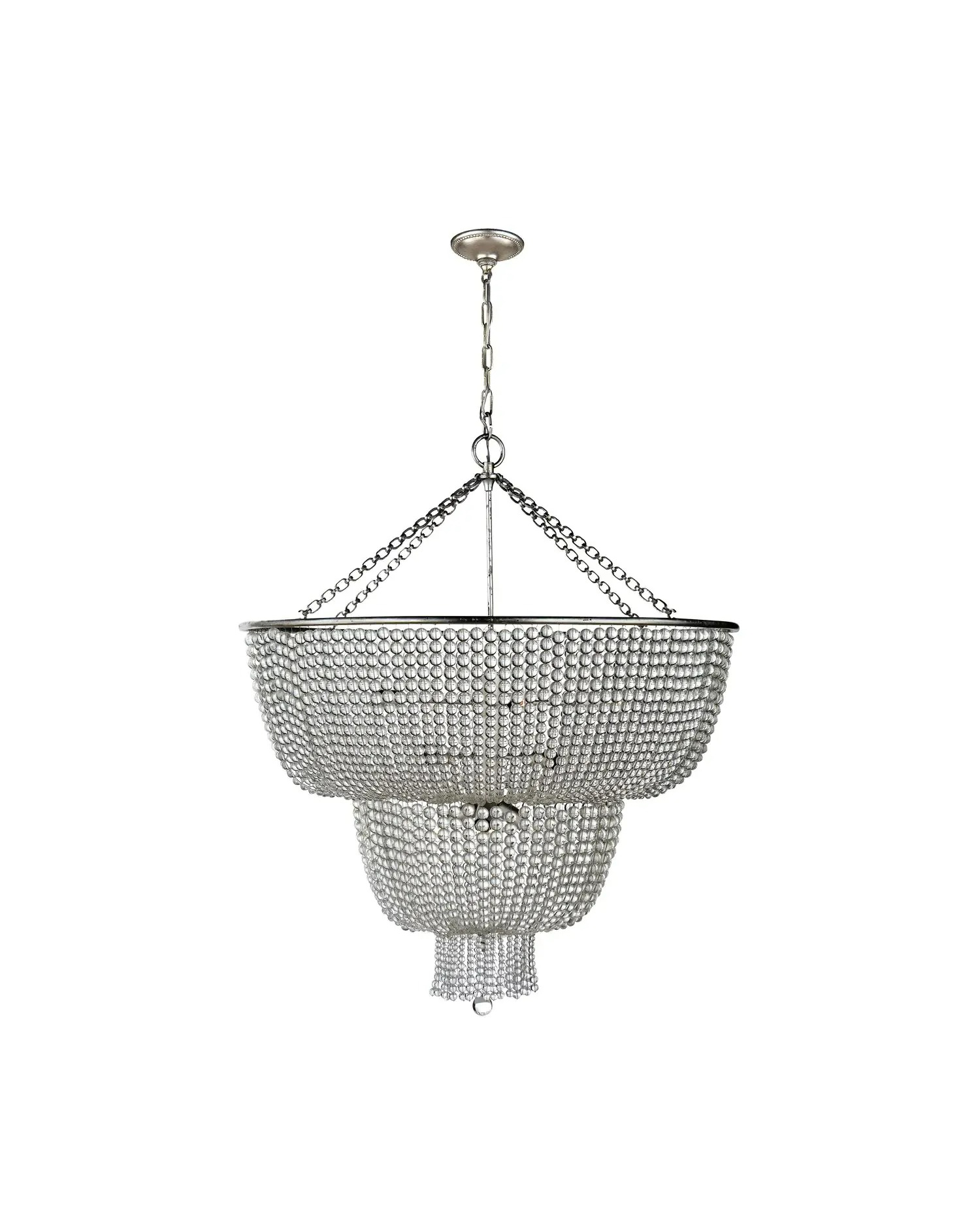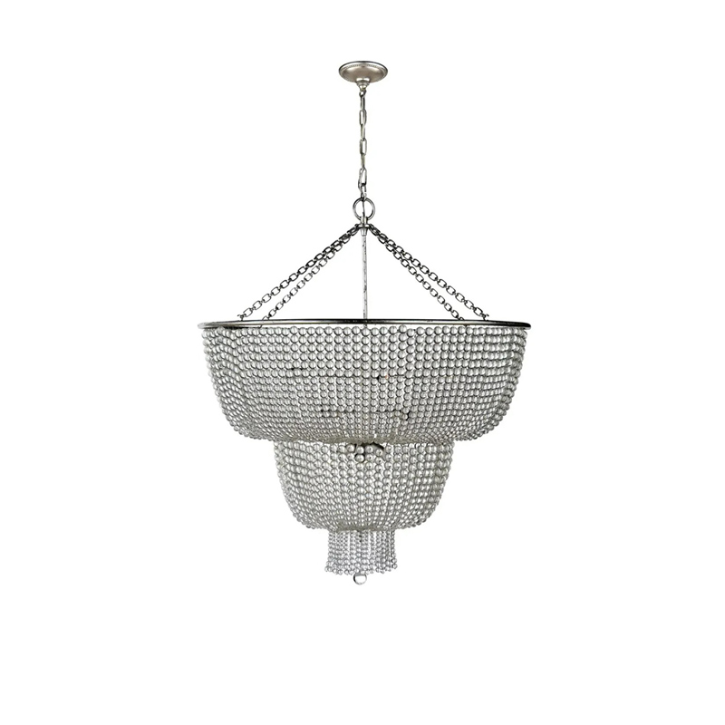 Большая серебряная люстра “Карла” со стеклянными бусами