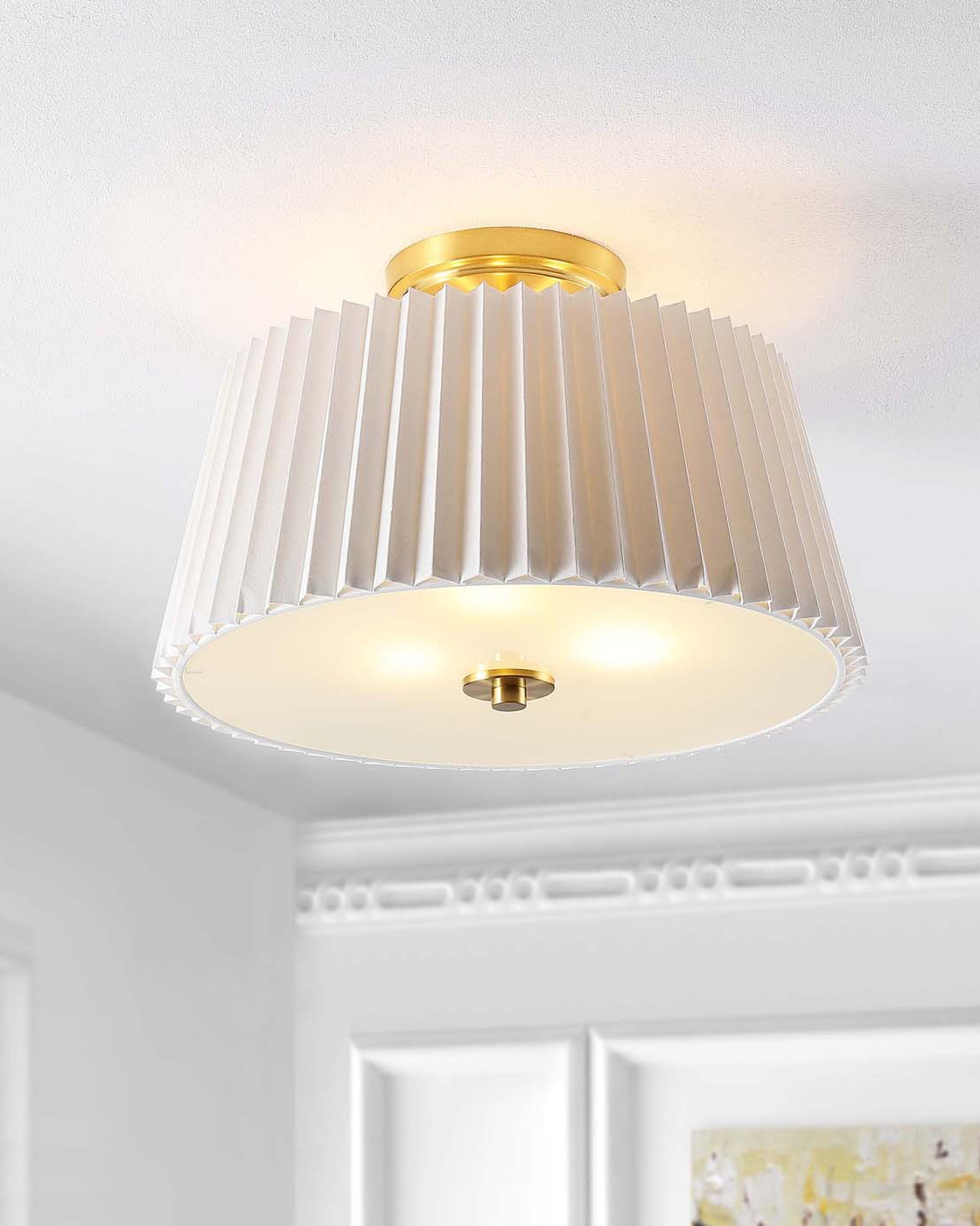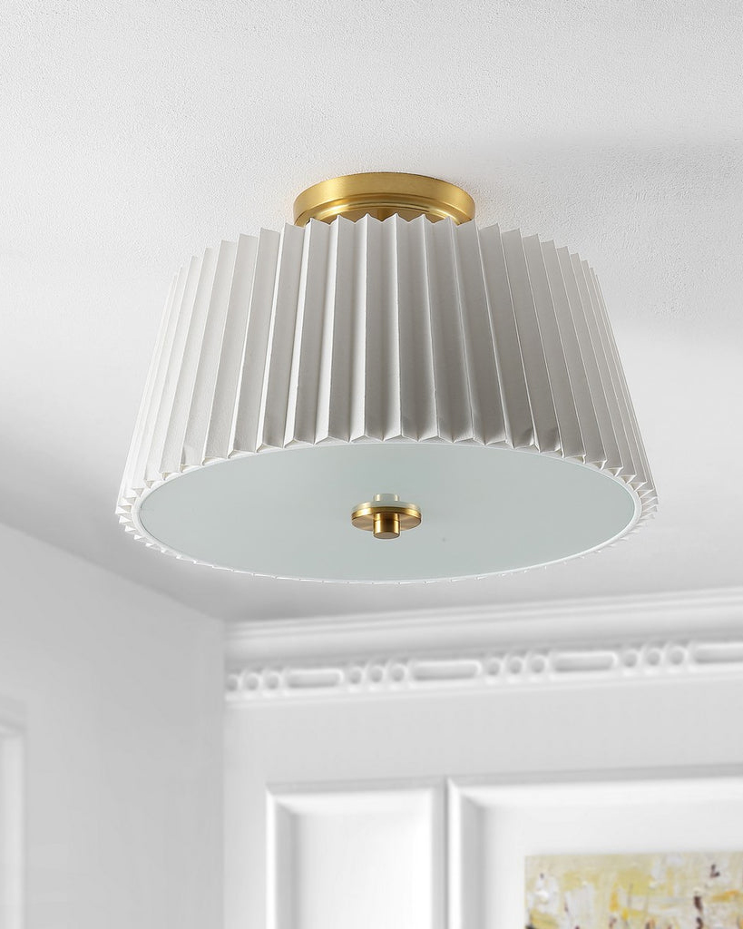 Запросить индивидуальное предложениеГлавной особенностью светильника “Димпл” является его белый плиссированный абажур из ткани. Этот абажур придает лампе игривый и нежный вид, создавая приятную и мягкую атмосферу в помещении. Плиссировка ткани добавляет светильнику объемности и интересности, делая его истинным центром внимания в комнате. Дополнительной особенностью светильника является его металлические акцентные детали, выполненные в цветовой гамме латунь. Он будет отлично сочетается с другими элементами декора и мебели, создавая гармоничное и уютное пространство. Благодаря своим размерам и форме, он легко впишется в любое помещение, будь то гостиная, спальня или кабинет. Потолочный светильник “Димпл” станет прекрасным дополнением к любому интерьеру. сочетающее в себе элегантность и современность!