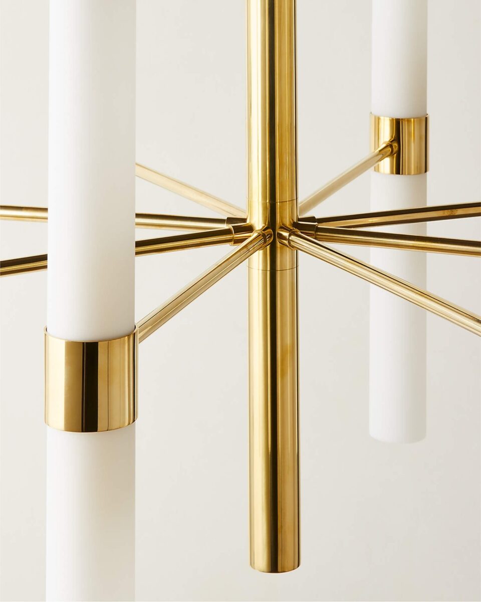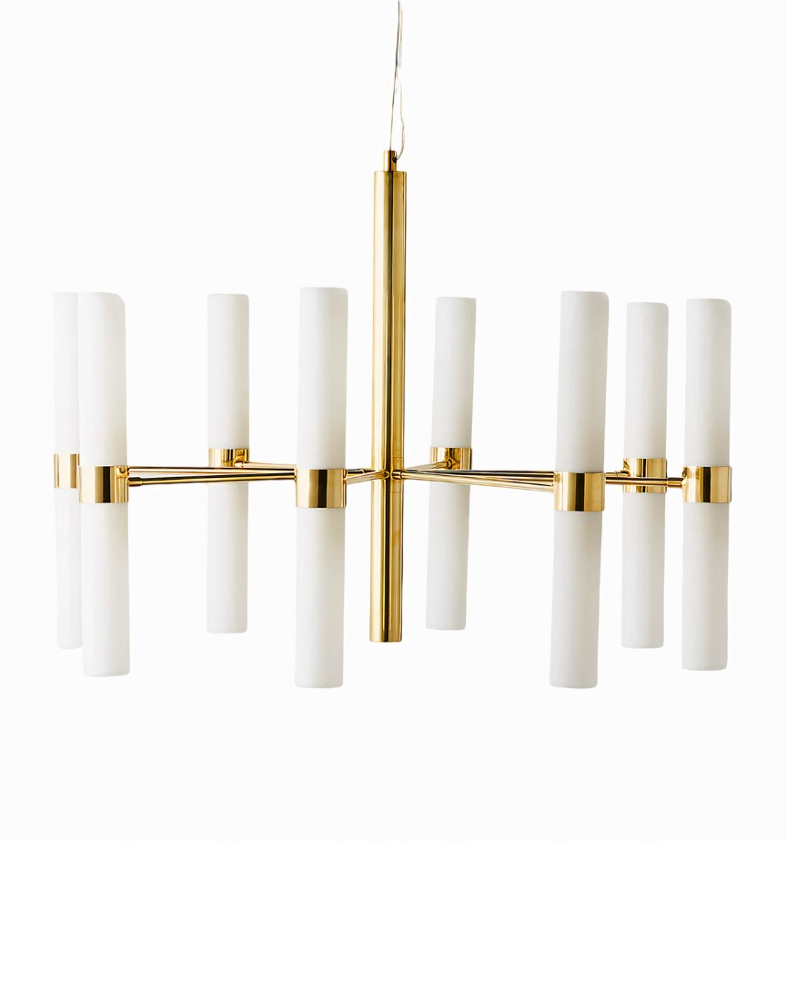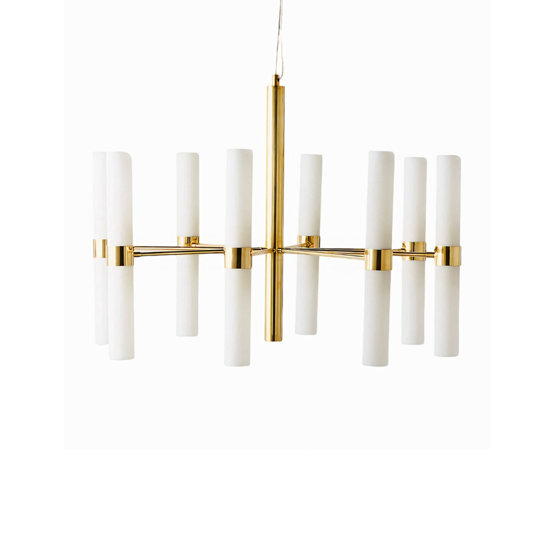 Запросить индивидуальное предложениеЗолотая люстра “Амье” – это современный светильник с отделкой в цветовой гамме латунь. Он оснащен 16 тонкими цилиндрическими плафонами, которые идеально дополняют его минималистский дизайн. Этот светильник идеально подойдет для размещения над обеденным столом, создавая уютную атмосферу. Когда светильник включён, он источает теплое, благородное свечение, которое погрузит комнату в уют и расслабленность. Плафоны равномерно распределяют свет, что придает помещению приятный и мягкий оттенок. Эта золотая люстра прекрасно сочетается с различными стилями интерьера, от классического, до современного. Она станет стильным акцентом в гостиной, обеденной зоне, спальне или в прихожей.