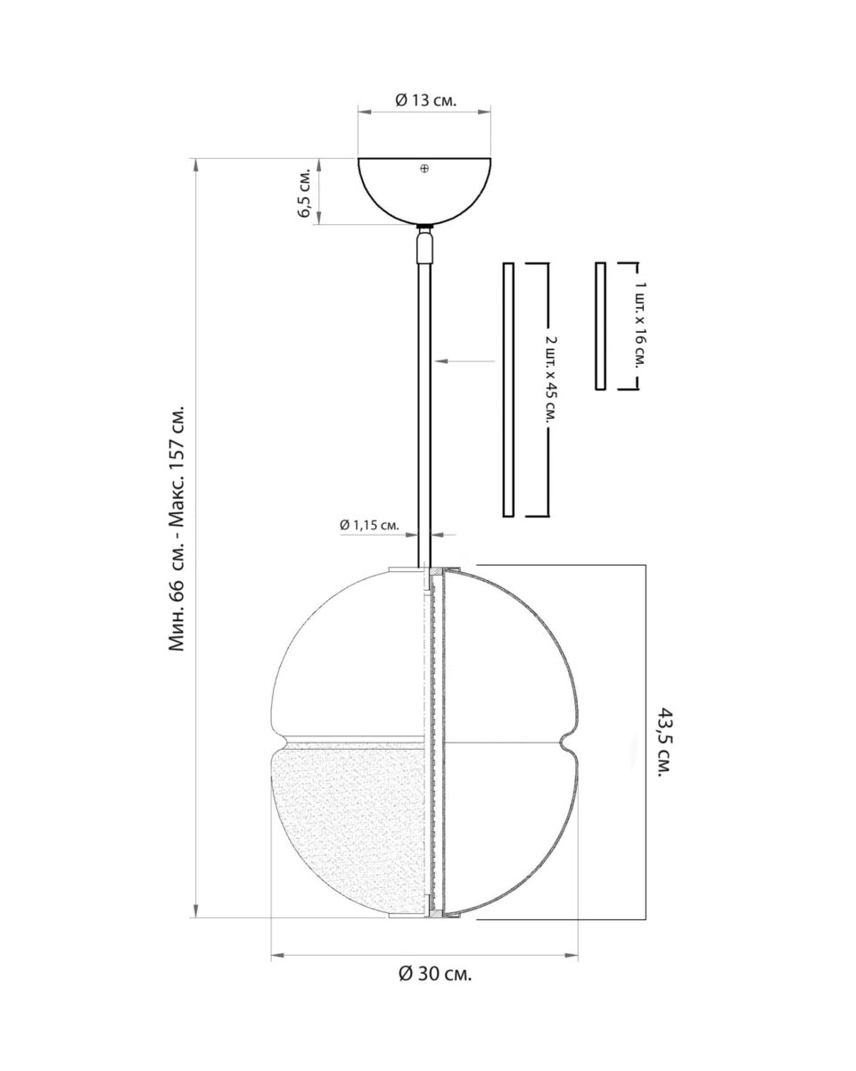 Размер: 43,5 см х Ø 30 см.